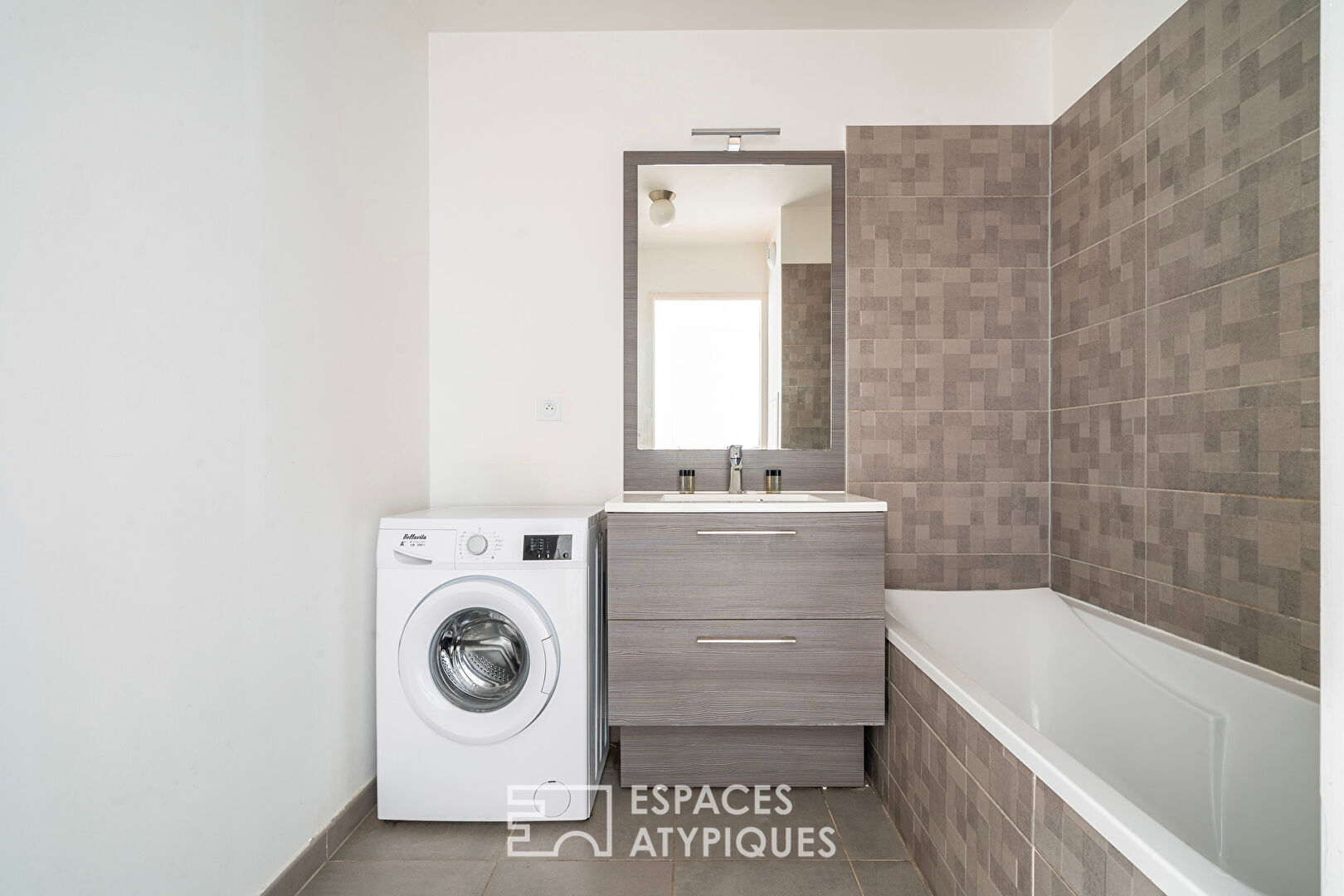 Situé entre le Stade Raoul Montbrand et la station 8 Mai 1945, ce penthouse de 103,55 m² Carrez s'installe au dernier étage d'un immeuble récent avec ascenseur. Véritable havre de lumière, cet appartement est ceinturé par une spectaculaire terrasse de 162 m², offrant un panorama entièrement dégagé. Dès l'entrée, un couloir dessert quatre chambres (de 9 à 14 m²), dont une suite avec salle d'eau, chacune bénéficiant d'un accès direct à l'extérieur. Une salle de bains ainsi que deux WC indépendants complètent l'espace nuit. Dans la continuité, un vaste séjour de 34 m², complété par une cuisine semi-ouverte équipée, est baigné de lumière grâce à une triple exposition. Véritable fil conducteur de l'appartement, la terrasse de 162 m² s'invite dans chaque pièce et offre de multiples espaces de détente et de réception plein ciel, où intérieur et extérieur se confondent harmonieusement. Avec sa distribution familiale, ses volumes baignés de lumière et son rapport unique à l'extérieur, ce penthouse dessine un cadre de vie contemporain et singulier. Métro : 8 Mai 1945 à 400 mètres CLASSE ENERGIE : C/ CLASSE CLIMAT : C Montant moyen estimé des dépenses annuelles d'énergie pour un usage standard, indexées aux années 2021, 2022, 2023 : entre 1 080 euros et 1 510 euros (abonnement compris). Les informations sur les risques auxquels ce bien est exposé sont disponibles sur le site Géorisques : https://www.georisques.gouv.fr Contact: Grégory 06 60 65 34 66 RSAC: 822 473 120 Paris Copropriété de 50 lots - dont 50 lots habitation. (Pas de procédure en cours). Charges annuelles : 4828 euros. Gregory Brasier (EI) Agent Commercial - Numéro RSAC : 822 473 120 - Paris.