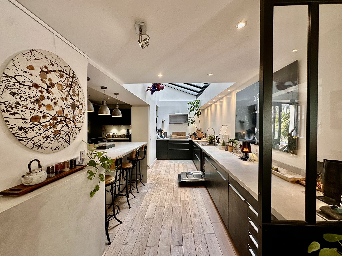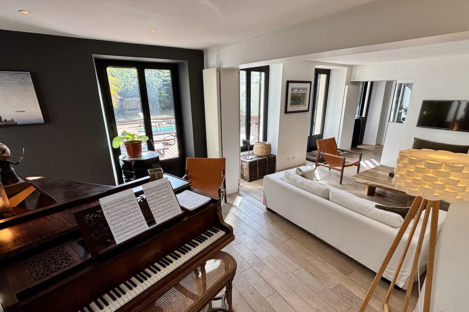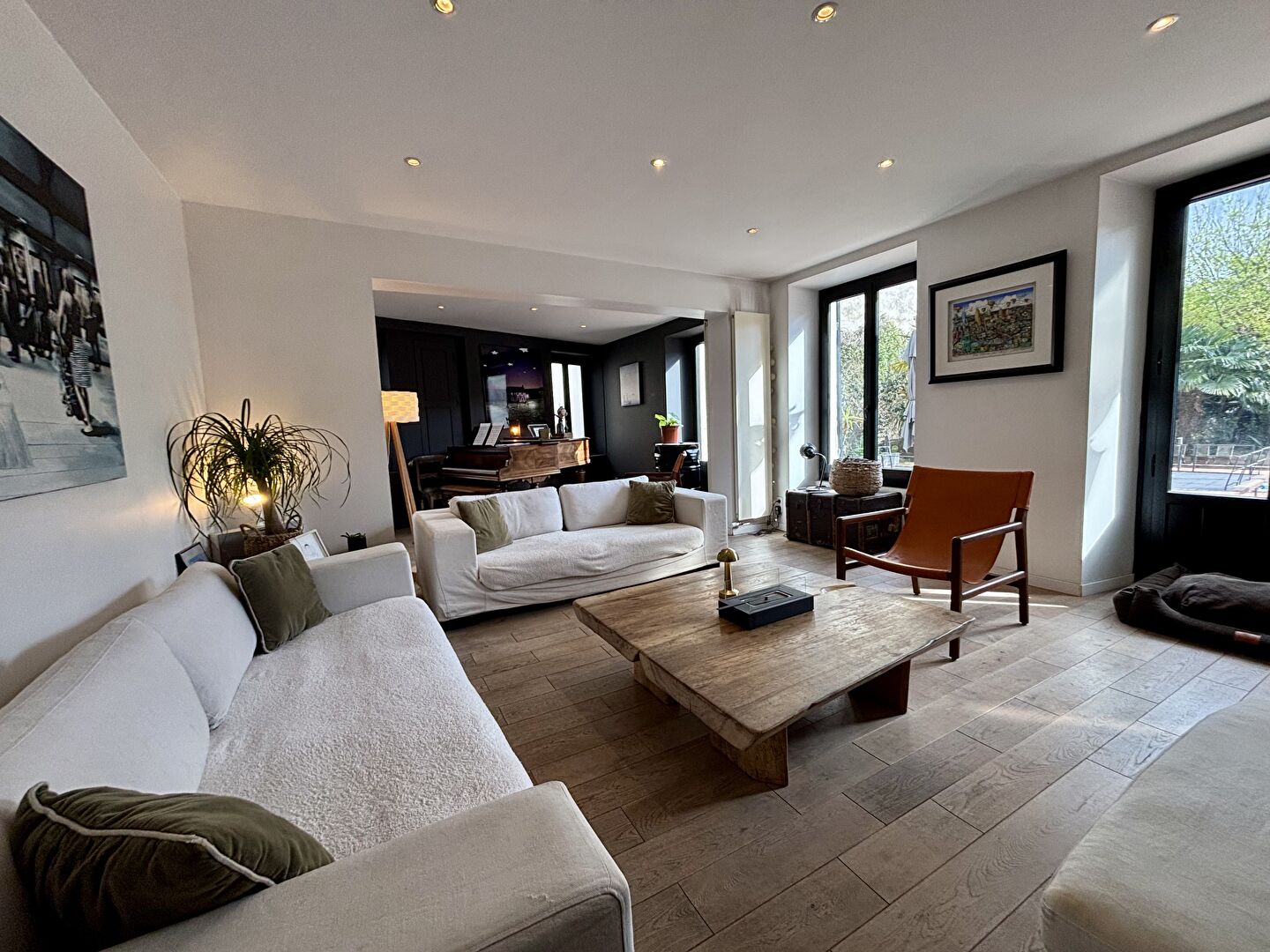 En plein coeur de ville de Montmorency, à proximité immédiate des écoles, commerces de qualité et autres charmes du centre-ville, cette imposante maison de famille est tout simplement unique. Implantée sur un terrain clos de 650m² sans vis-à-vis à l'abri des regards grâce à son portail automatique, cette maison bourgeoise d'environ 485m2 séduit au premier regard par son style authentique du 17ème siècle. A l'intérieur, on est conquis par sa rénovation totale, des espaces surprenants et des volumes généreux. Au rez-de-chaussée, l'entrée se découvre sous la glycine centenaire et s'ouvre sur l'escalier central de la maison. Sur la gauche, la maison offre un agréable séjour qui donne d'un côté sur une seconde pièce de vie et un WC invités, et, de l'autre, sur une grande cuisine ouverte, moderne et lumineuse. Sur la droite, une belle salle à manger avec un escalier confidentiel en haut duquel s'écriront bien des histoires. Dans les 3 étages supérieurs, la vie de famille s'annonce heureuse grâce aux 4 belles suites, chacune avec son dressing et sa salle d'eau, une salle de billard pour les soirées entre amis, une salle de jeux, un confortable bureau... et, cerise sur le gâteau, une vue panoramique sur Paris pour la suite du dernier étage ! Il ne manque décidément rien à ce bien d'exception qui compte même un grand sous-sol aménagé avec véritable salle de cinéma, cave à vin voûtée et nombreux rangements. A l'extérieur, le jardin paysagé invite à la détente à l'ombre des palmiers, au bord de la piscine ou sur la terrasse... comme un air de vacances au quotidien ! Côté pratique, une allée permet de garer jusqu'à 5 véhicules à l'intérieur du terrain. Tout le charme d'autant avec le confort d'aujourd'hui... à visiter sans tarder !