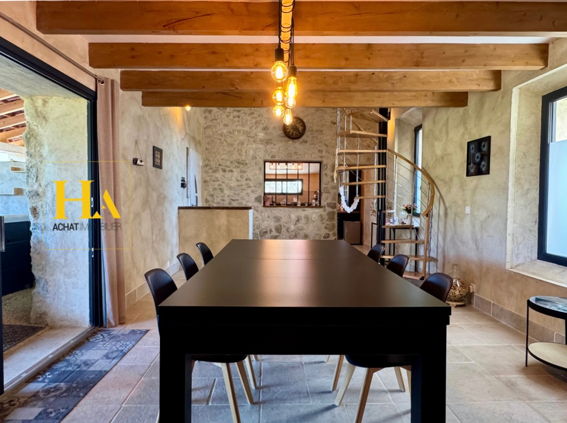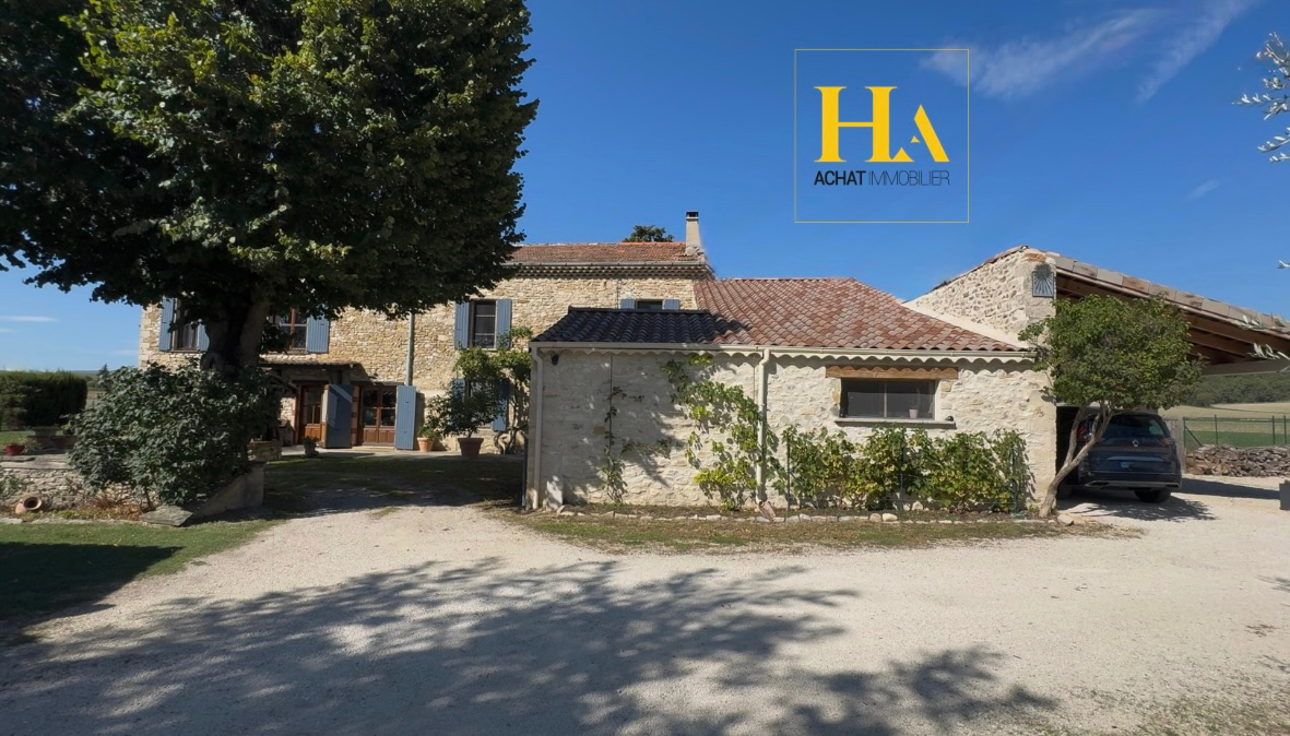 NOUVEAUTÉ HA IMMO ! Mas en pierre de 368 m² en Drôme Provençale, A seulement 20 min de Montélimar, découvrez ce corps de ferme composé de 2 habitations pouvant être réunies ou conservées indépendantes. L'ensemble du bien s'ouvre sur un jardin clos et arboré de 3985m2, et de terres agricoles attenantes de 1.7 hectares. L'aile droite dévoile un espace moderne aux lignes épurées, tandis que l'aile gauche conserve toute l'authenticité et charme de l'ancien. La partie droite de 226m2 a été entièrement rénovée en 2020. Le salon-séjour et la cuisine moderne offrent confort et charme de la pierre. L'espace nuit : - 2 chambres en rez-de-chaussée dont une suite parentale. - 3 chambres, une salle d'eau et une salle de jeux de 27m2 à l'étage. La partie gauche de 142 m2 apporte tradition et rénovation avec goût. La cuisine conviviale donne accès au salon avec cheminée. La partie nuit se compose : - 1 chambre en rez-de-chaussée + salle d'eau - 3 chambres à l'étage + salle de bains Côté extérieur : La propriété est équipée d'un carport, d'un puits en pierre et d'un portail électrique. Les PLUS : - Un atelier de 50m2 - Un jacuzzi avec vue sur les montagnes - Espace cinéma de 25m2 - Terrain piscinable - Gites potentiels Découvrez ce lieu de charme offrant un cadre unique, idéal pour les amoureux de la nature tout en restant proches des commodités. Contactez nous pour organiser une visite au 06.25.89.37.71 ou au 06.16.59.87.96. Damien et Clément. DAMIEN ORTEGA (EI) Agent Commercial - Numéro RSAC : 985031830 - ROMANS.