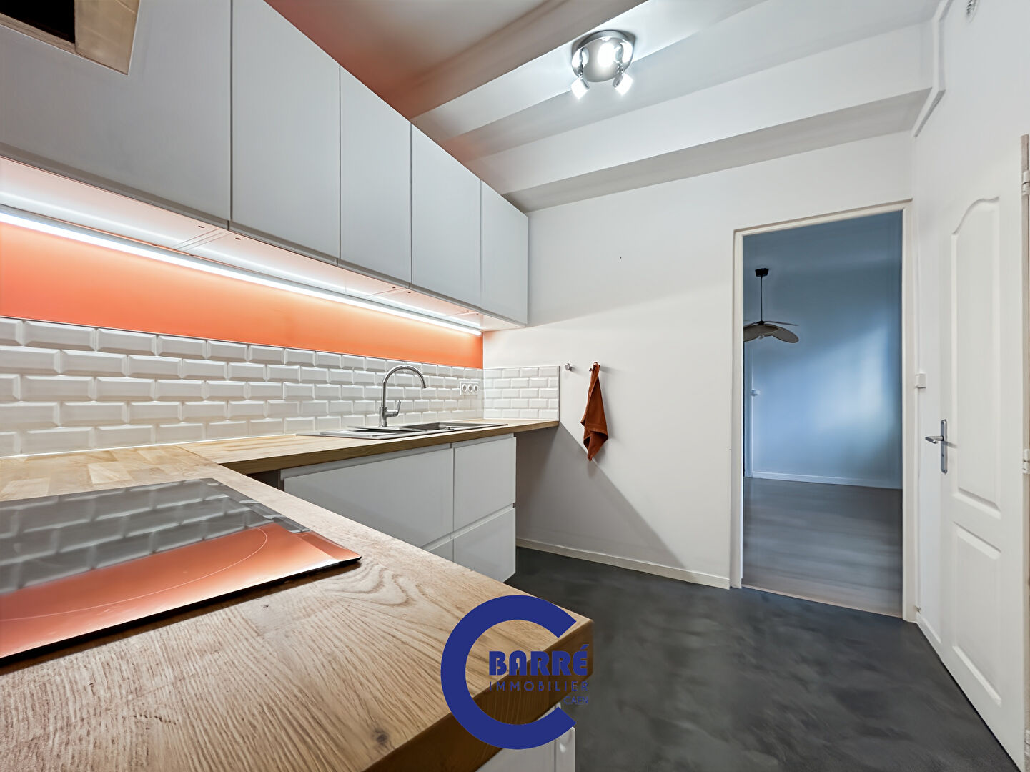 LE CABINET BARRE IMMOBILER : CAEN - HYPER CENTRE HISTORIQUE Au coeur du centre ville ancien, situé au 1er étage d'un immeuble en copropriété, vous trouverez un appartement de 3 pièces principales comprenant une entrée, un grand espace de vie lumineux de 32m² orienté SUD donnant sur une cour intérieure avec salon et salle à manger, une cuisine aménagée équipée, une suite parentale de plus de 20m² avec salle de bains, une chambre et un WC indépendant. Aucuns travaux à prévoir, belle hauteur sous plafond. Chauffage individuel Gaz. Une cave en sous sol complète ce bien. Contactez le Cabinet BARRE pour plus d'informations. (5.31 % honoraires TTC à la charge de l'acquéreur.) Copropriété de 66 lots - dont 36 lots habitation. (Pas de procédure en cours). Charges annuelles : 1560 euros.
