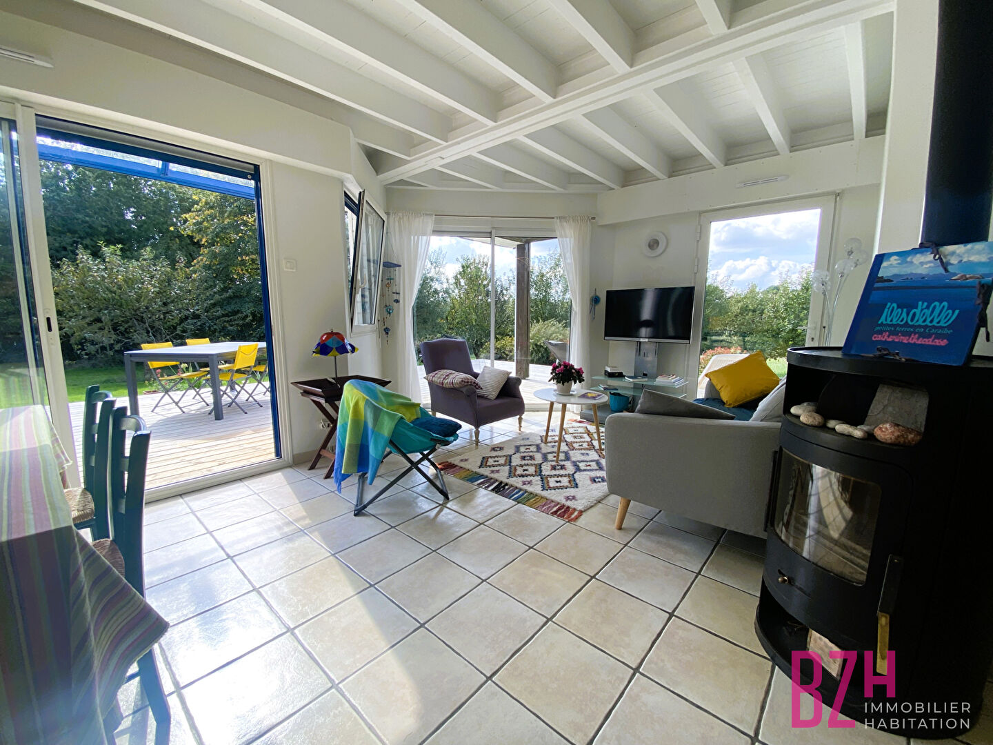 Découvrez cette maison d'architecte en ossature bois de 145 m², nichée au calme entre Treffléan et Vannes, au fond d'une allée privée, dans un environnement verdoyant et paisible. Vous profiterez d'un cadre de vie exceptionnel grâce à son terrain rare de plus de 7 000 m² arboré, divisible et en partie constructible, comprenant un verger ainsi qu'une grande dépendance. Édifiée dans un esprit contemporain, la maison se compose : Au rez-de-chaussée : une entrée donnant sur un vaste salon-séjour de plus de 50 m² exposé plein sud, baigné de lumière grâce à ses grandes baies vitrées en aluminium, une cuisine ouverte aménagée et équipée prolongée par une arrière-cuisine, une suite parentale de plain-pied avec bureau attenant, ainsi qu'un garage. A l'extérieur, une superbe terrasse en bois exotique vous invite à la détente, dans un cadre préservé sans aucun vis-à-vis. A l'étage : une belle mezzanine desservant trois chambres, dont deux avec accès balcon, et une salle de bain. A l'extérieur, vous serez séduits par son terrain paysager avec verger et surtout par sa grande dépendance comprenant un double garage, un atelier et un étage aménageable offrant de multiples possibilités. Ce bien rare aux portes de Vannes allie volumes généreux, luminosité et potentiel d'aménagement sur un terrain exceptionnel. Informations sur les risques liés à ce bien disponibles sur le site Géorisques : www.georisques.gouv.fr L'équipe BZH Habitation est à votre disposition pour organiser une visite ou vous fournir plus de renseignements. Ref. 7580