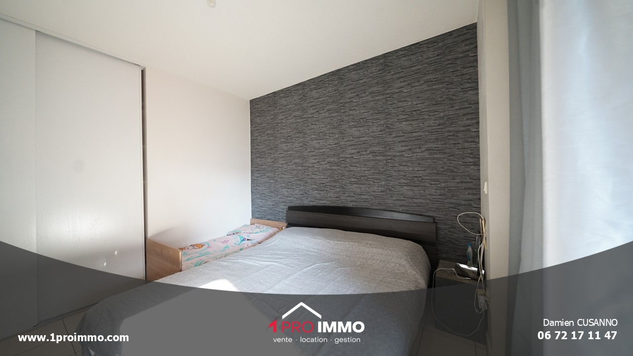 une entrée avec un double placard, un salon avec une cuisine équipée ouverte d'une surface de 41 m², deux chambres ( 10 m² et 11 m² ) avec placards de rangement, une salle de bains et un WC séparé.