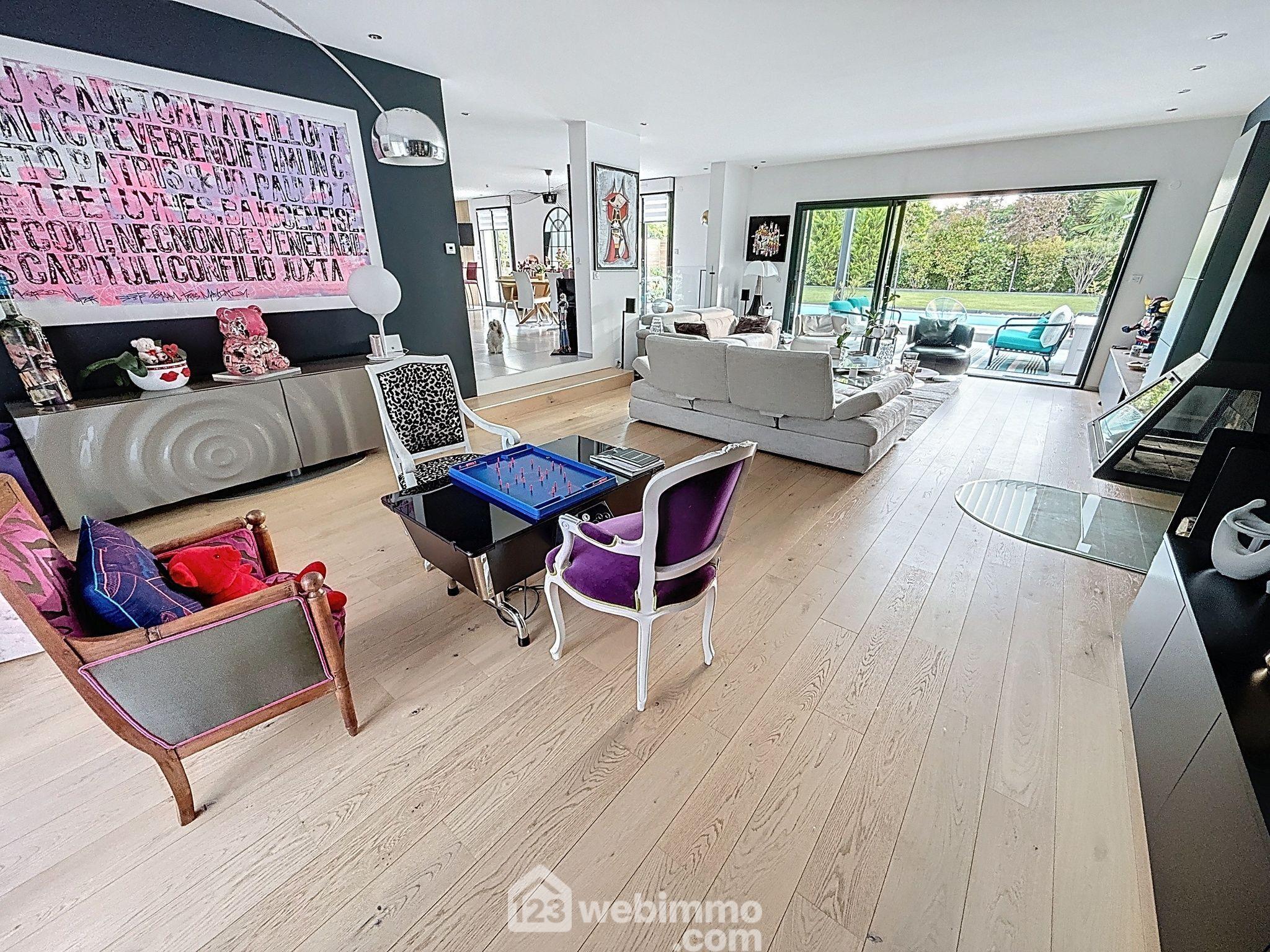 Votre agence 123webimmo l'immobilier au meilleur prix vous présente : Nichée sur le secteur recherché, ce pavillon d'exception d'environ 230 m² habitables se distingue par ses volumes généreux, sa luminosité et ses prestations haut de gamme. Édifiée sur un terrain clos et arboré de 880 m², elle offre un cadre de vie privilégié, alliant élégance et confort moderne.