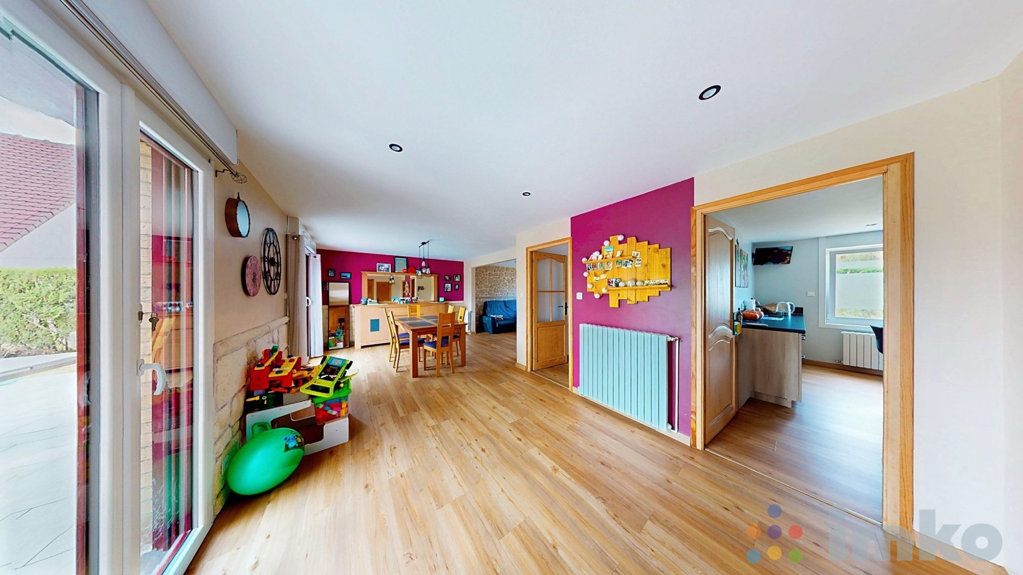 Composée d'un hall d'entrée avec deux placards de rangements desservant sur un vaste séjour, salle à manger avec une cuisine équipée séparée.