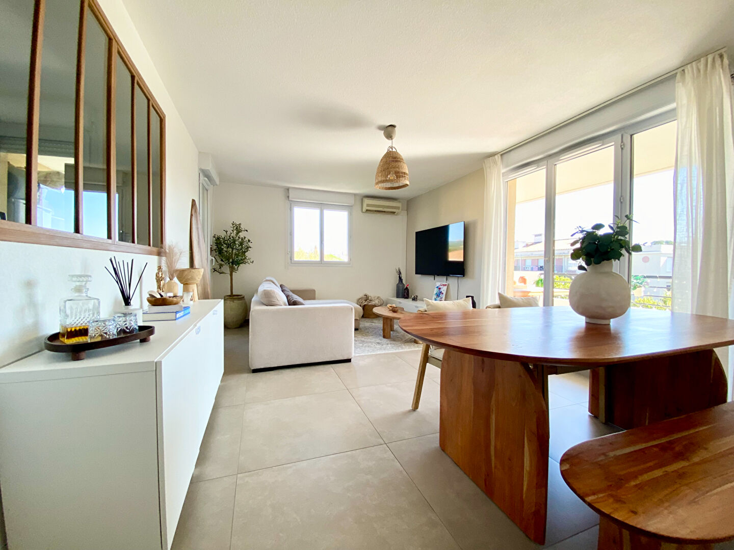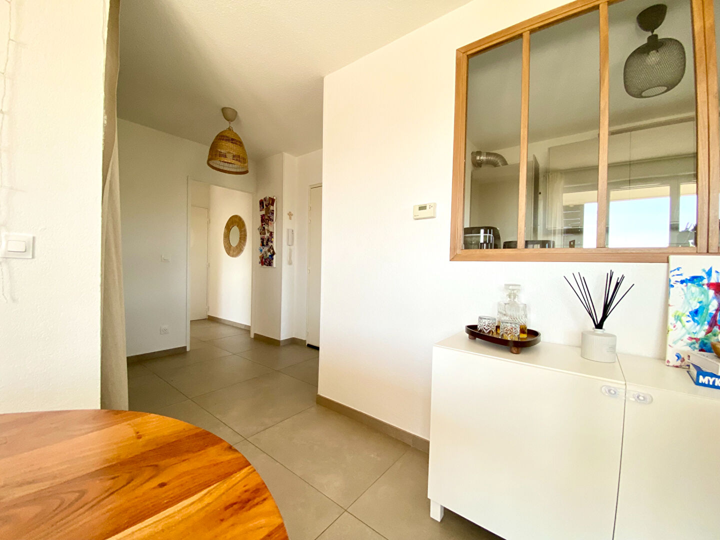 Découvrez ce magnifique appartement T3 de plus de 67m2 à la décoration soignée et contemporaine. Situé au 2ème étage sur 3 avec ascenseur d'une résidence de 2006, d'exposition Sud Est, vous apprécierez ses volumes, sa clarté et l'attrait de ses deux terrasses. L'appartement se compose : - d'une vaste entrée avec dressing , - d'une cuisine indépendante avec une magnifique verrière donnant sur le salon - d'un salon très lumineux climatisé - de deux grandes chambres avec parquet au sol - d'une salle de bain avec baignoire - d'un wc indépendant Le salon donne sur une belle terrasse de 12m2 et communique avec la seconde terrasse qui se trouve dans le prolongement de la cuisine et qui est en partie aménagé en buanderie et rangements grâce à sa surface entièrement abritée. La résidence est très bien entretenue, fermée par un portail automatique et propose des places visiteurs. L'appartement est vendu avec une place de stationnement extérieure, possibilité de louer un box fermé au sous-sol en sus. Aucun travaux à prévoir, l'appartement a été rénové avec soin et beaucoup de goût, il ne reste plus qu'à poser vos valises. Pour toutes informations ou visites, contactez sans plus attendre Julie Siniscalchi au 06 18 87 21 61 ou par mail jsiniscalchi@agencedusud.fr Copropriété de 129 lots - dont 43 lots habitation. (Pas de procédure en cours). Charges annuelles : 1460 euros. Julie SINISCALCHI (EI) Agent Commercial - Numéro RSAC : - .