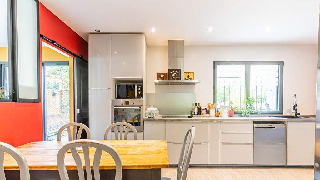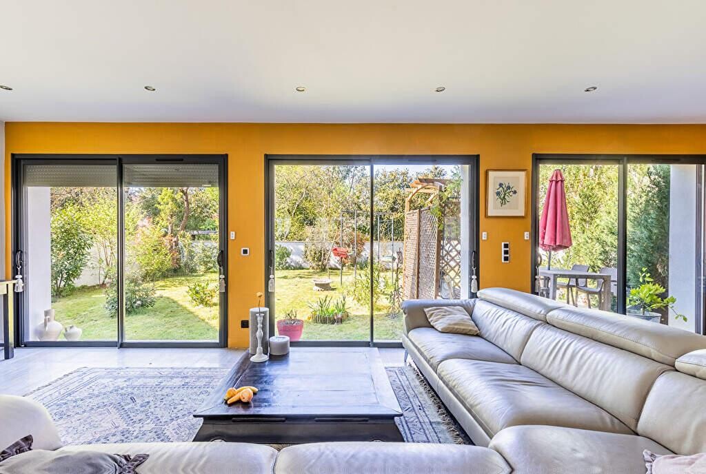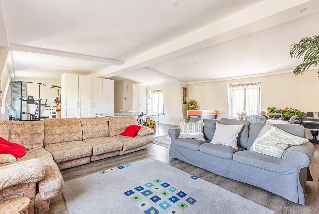 Dans un environnement calme et recherché de Verrières-le-Buisson aux bords de la coulée verte, découvrez cette grande maison familiale de 360m² habitables et son agréable jardin arrière de 260m² avec terrasse et bain de soleil. Vous apprécierez particulièrement ses beaux volumes repartis sur 3 niveaux. Au RDC, vous trouverez un hall d'entrée avec rangements, un double séjour - salle à manger d'environ 60m² baigné de lumière grâce aux grandes baies vitrées donnant sur le jardin, une cuisine dinatoire d'environ 18m², une chambre de 12m² donnant sur le jardin avec sa salle de bains complète (douche, baignoire, double vasque, WC), des WC avec lave mains. Le 1er étage offre 2 grandes chambres d'environ 15m² avec leur salle d'eau individuelle avec WC. L'espace suite parentale se compose quant à lui de 2 salles de bains complètes, de deux dressings et d'une chambre d'environ 18m². Vous y trouverez également un bureau et une lingerie. Au 2ème étage, vous trouverez 2 chambres, une salle d'eau avec WC, une grande pièce à vivre avec un coin salle de musculation de près de 75m². Enfin, un sous-sol total entièrement vient compléter ce bien : garage pouvant accueillir 3 voitures (complété par 2 places en extérieur), un cellier, un local technique et des WC avec lave mains. La demeure date de 2018 et bénéficie donc encore d'une garantie décennale. RER B Massy Verrières (800 m). Contactez nous ! (2.17 % honoraires TTC à la charge de l'acquéreur.)
