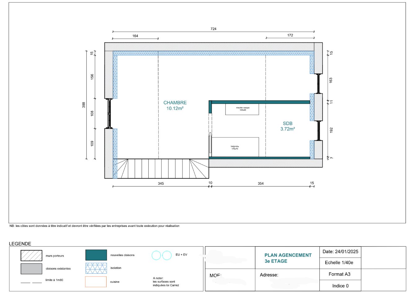- Sanitaires : salle de bains avec baignoire, meuble vasque.
