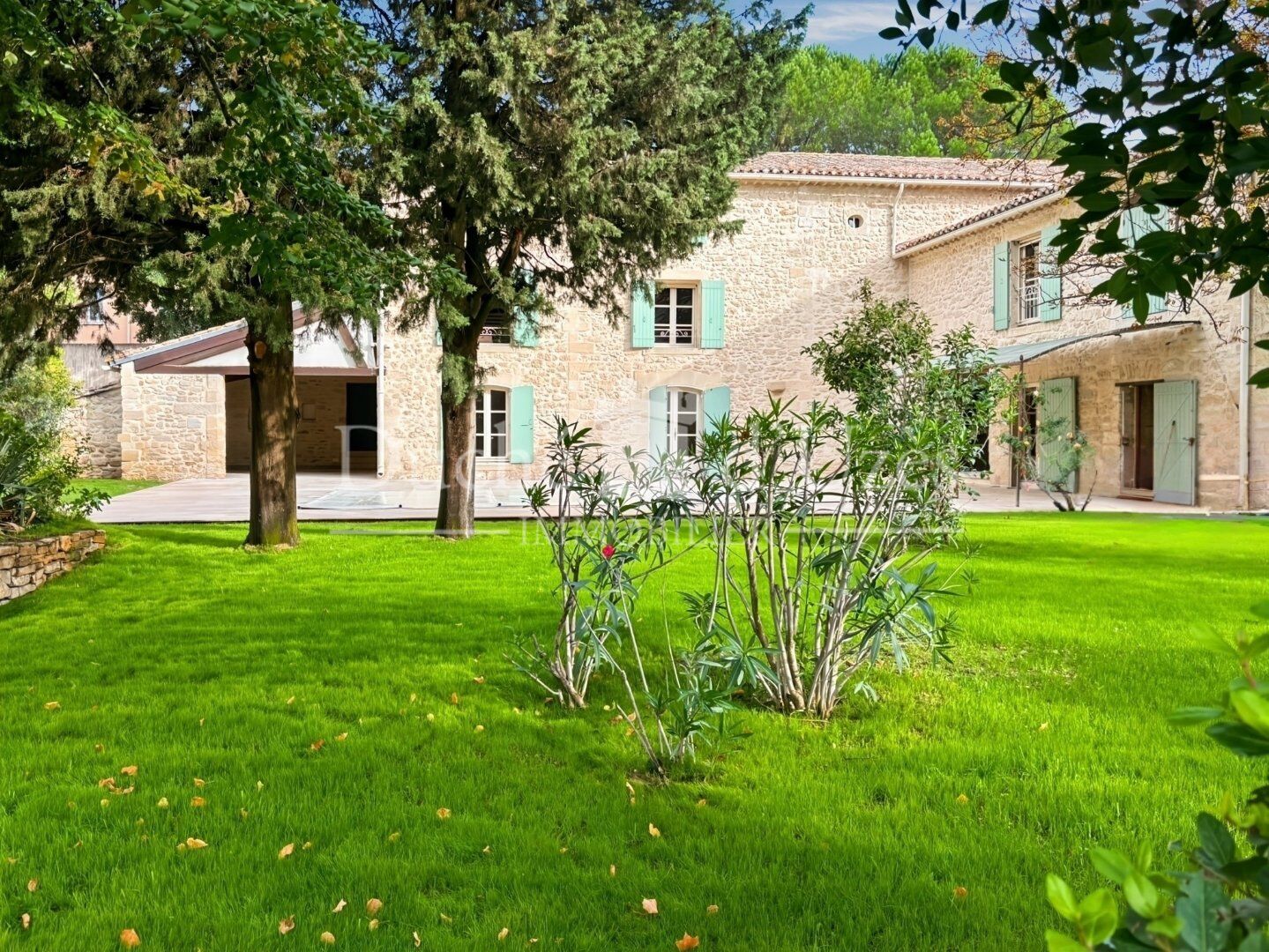 UZÈS CENTRE A PIED. Cette propriété est remarquable, il n'y a pas de mots pour la décrire. Ce mas d'environ 290 m², situé sur un terrain de 2500 m², propose des prestations de qualité, des volumes spacieux et tout le confort désiré. Il a préservé toute son authenticité. Au rez de jardin une cuisine de belles factures ouverte sur un porche. Attenante une belle pièce de vie lumineuse avec cheminée donnant sur les extérieurs et le pool house. Un bel escalier en pierre nous mène aux différents étages. Au premier un pallier dessert une première aile avec 3 chambres en suite dont une avec mezzanine, un bureau. Au même niveau l'autre aile s'ouvre sur une grandiose suite avec salle d'eau et baignoire. Enfin, au dernier étage, deux chambres en enfilade avec salle d'eau et toilettes. Côté extérieur, un terrain arboré et très joliment paysagé avec un espace piscine construit récemment. En sus une buanderie, un atelier et un garage. Un coup de coeur assuré ! Votre conseillère Adeline Debailleux inscrite au RSAC de Nîmes sous le n° 799841028 - Tél 06 99 73 72 22.Informations LOI ALUR : Honoraires charge vendeur. (gedeon_90372_31955041)