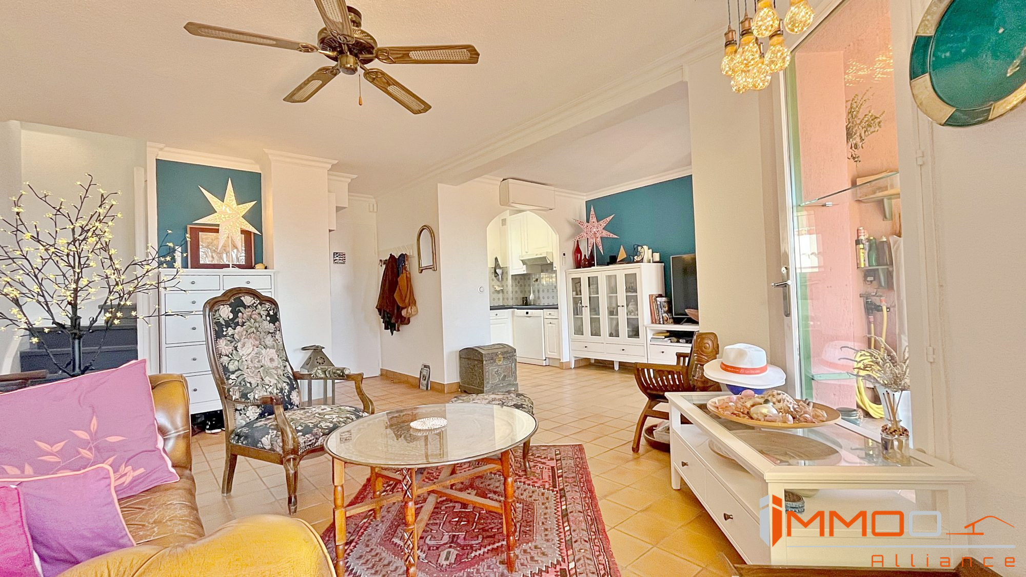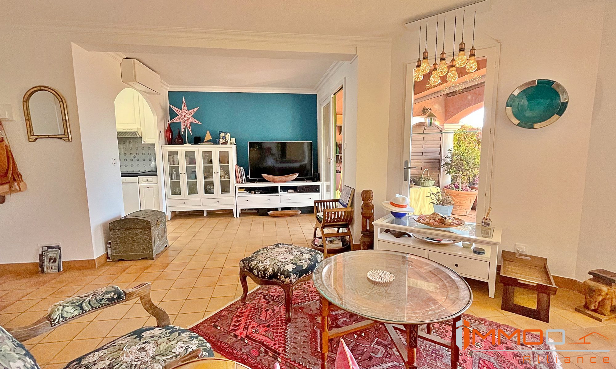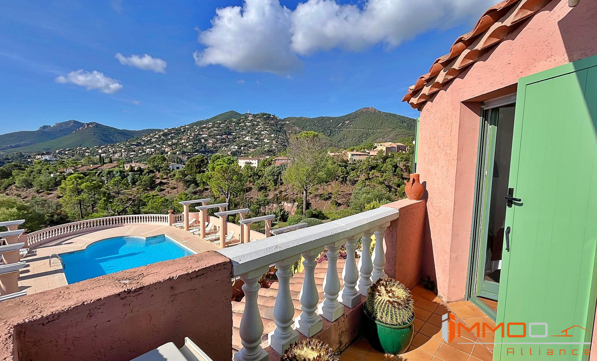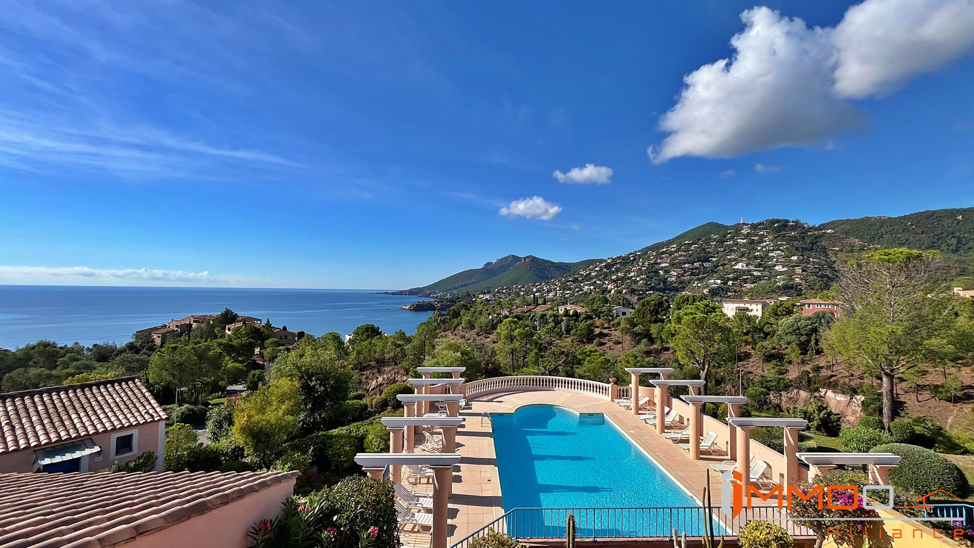 Dans un cadre de vie idyllique avec une vue imprenable sur la mer et le massif de l'Estérel, cette charmante maison mitoyenne bénéficie d'un espace de vie largement optimisé grâce à sa vaste terrasse de 37 m² exposée sud-ouest. Véritable prolongement du séjour, cet espace extérieur généreux enrichit considérablement la surface de vie globale pour une surface totale de près de 65m2.