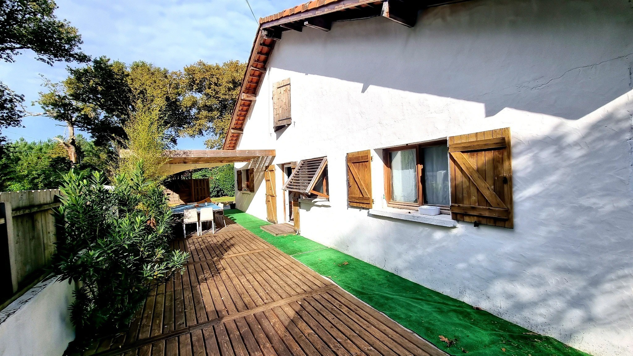 Dans un environnement préservé, à l'abri de toute nuisance, découvrez cet ancien habitat landais authentique. La maison principale, typique et rénovée avec soin, offre de beaux volumes : une cuisine ouverte sur un vaste espace de vie avec poêle à bois, prolongé par une terrasse en bois intime et sans vis-à-vis. Vous y trouverez également deux salles d'eau et cinq chambres, idéales pour accueillir famille et amis.