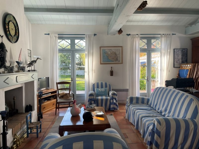 Nichée au coeur de son parc de 1437 m2, cette maison à l'architecture noirmoutrine vous accueillera dans son agréable pièce à vivre avec sa cheminée.