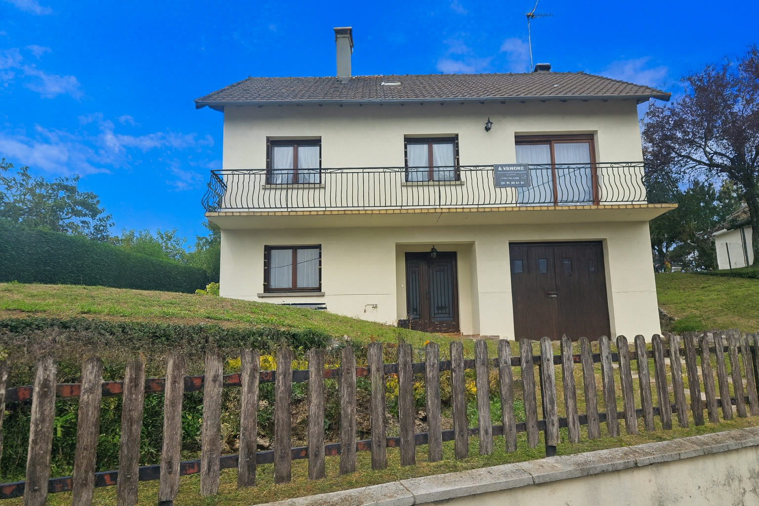 Pavillon de 1980, sur sous-sol total semi-enterré, situé sur la commune même de Sauviat-sur-Vige 87400, à seulement 12 minutes de Saint-Léonard-de-Noblat. Rez-de-chaussée comprenant entrée, pièce polyvalente (chambre possible, bureau ou autre), cuisine d'été, buanderie, WC, chaufferie, garage + petite cave. 1er étage : salon avec cheminée et baie coulissante donnant sur un sur balcon, salle à manger donnant sur une véranda, cuisine aménagée, une chambre, salle d'eau, WC. Au 2ème étage : deux autres chambres, salle d'eau avec WC. Sur une parcelle d'environ 900 m2 avec deux cerisiers, abri de jardin et annexe. Chauffage central fioul, double vitrage bois, tout-à-l'égout. Très bon état, prévoir rafraîchissement.