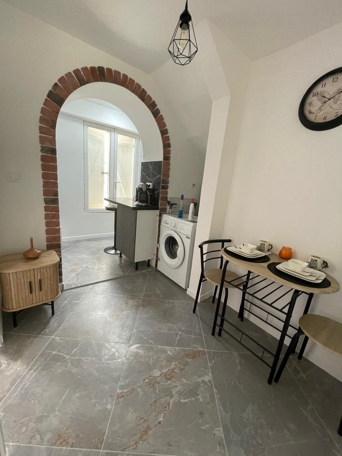 À Survilliers, appartement F2 de 31.25m2 meublé et refait à neuf en rez-de-chaussée avec vue dégagée, comprenant : une entrée sur séjour, une cuisine séparée, une chambre et une salle d'eau avec WC.