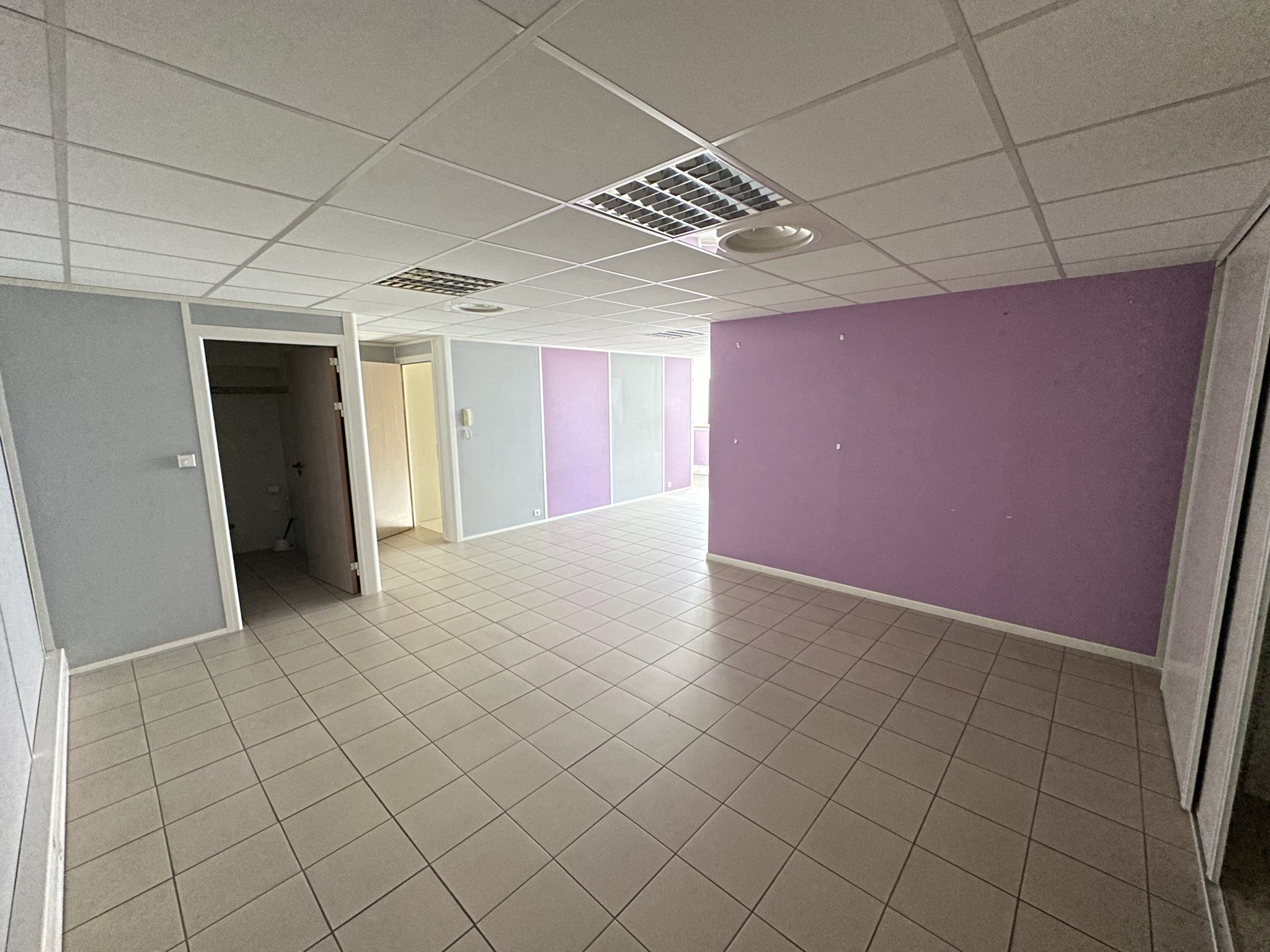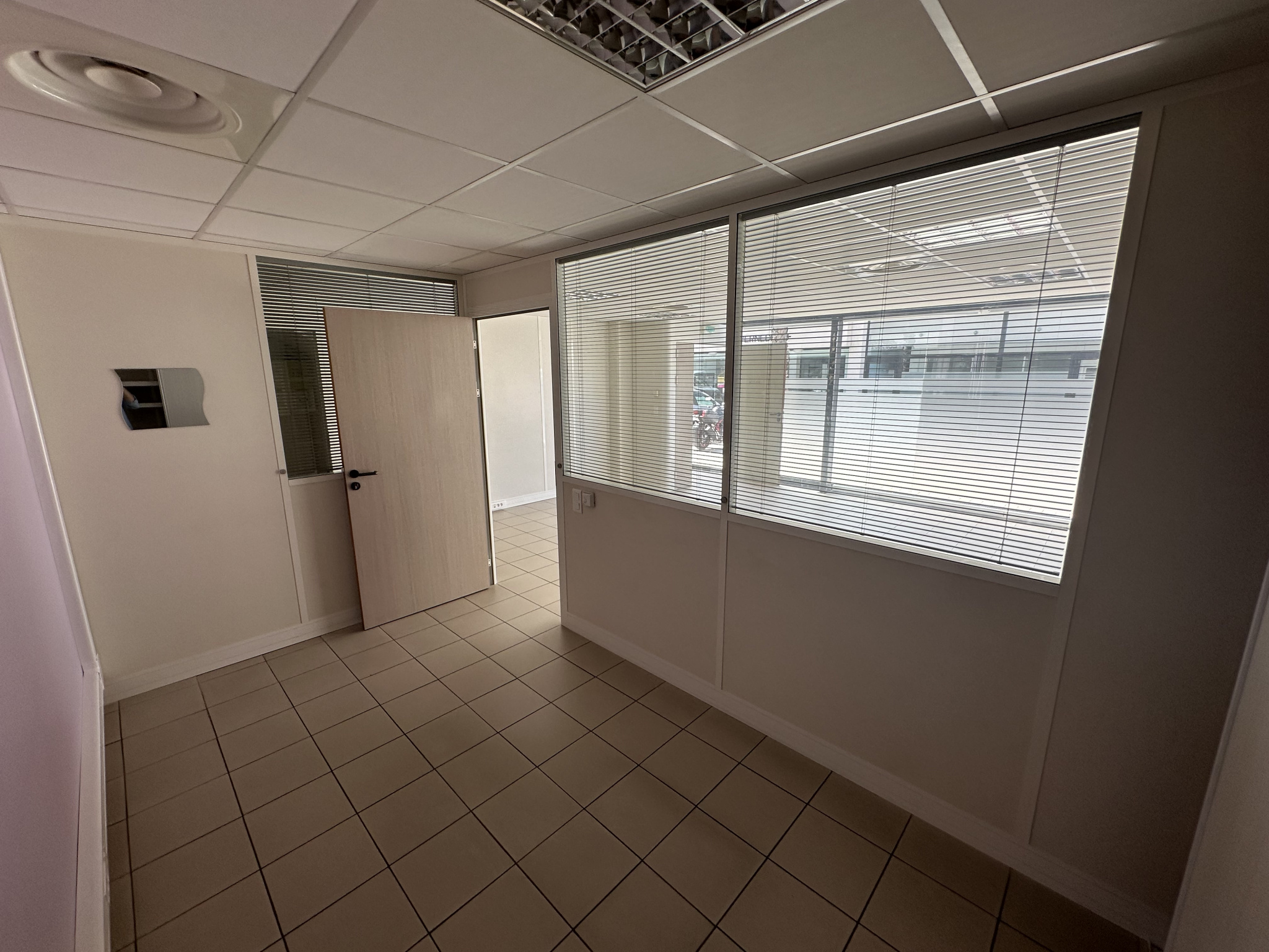 Ce bien dispose d'un bureau en rez-de-chaussée d'environ 75 mètres carrés doté d'une large vitrine toute hauteur avec porte à double vantail.