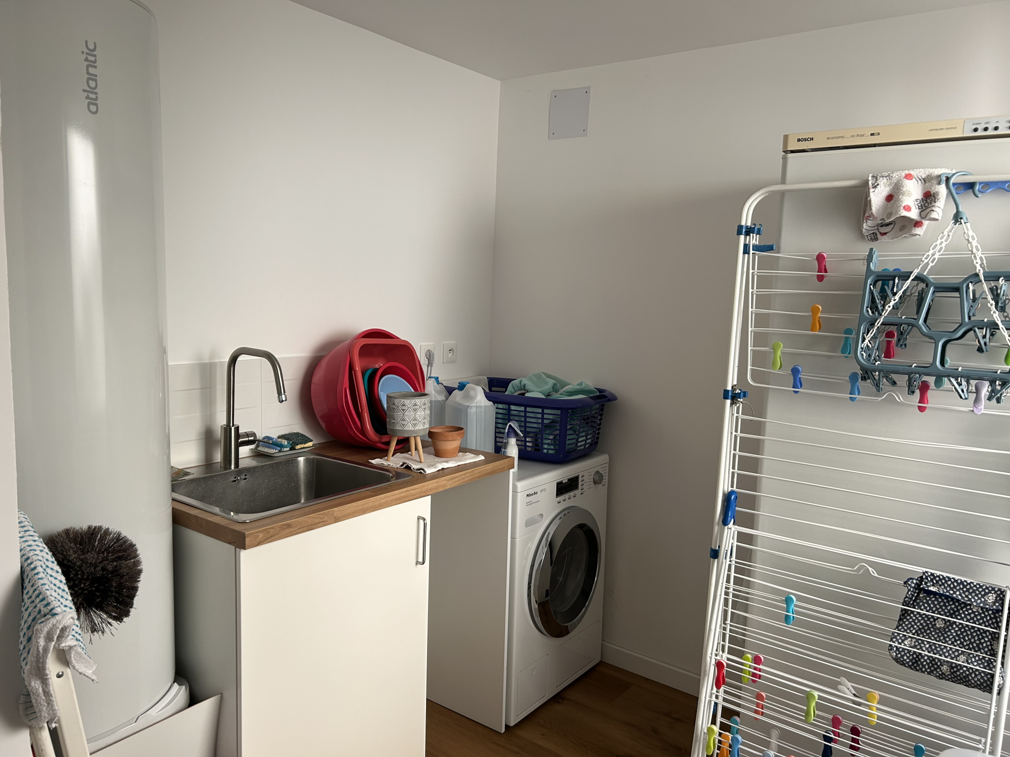 Charmante maison T5 rénovée en 2022. Au rez-de-chaussée, vous trouverez une entrée, une cuisine aménagée et semi-équipée (four, plaques, hotte) ouverte sur le séjour, une chambre avec salle d'eau, ainsi qu'une buanderie avec WC.