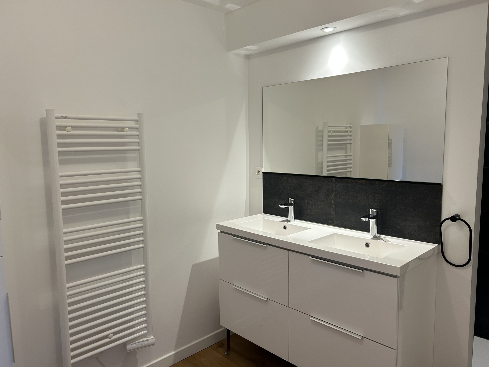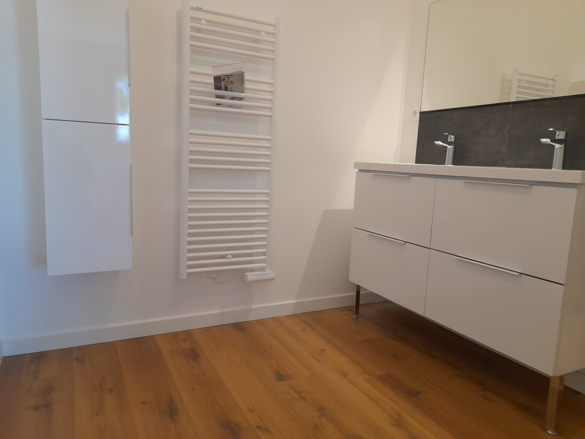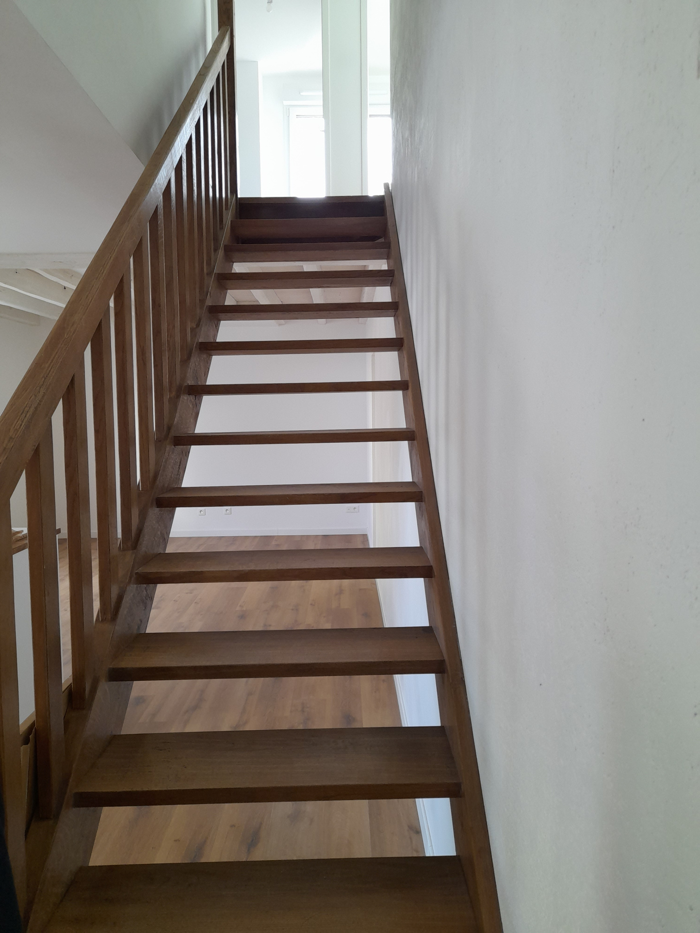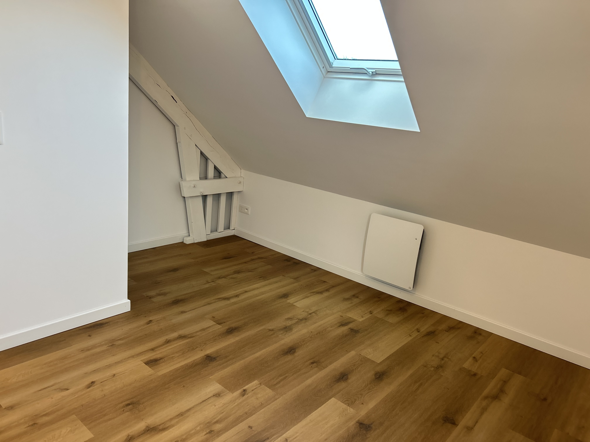 À l'étage, trois chambres lumineuses, une salle de bain avec douche et un WC séparé complètent l'ensemble.