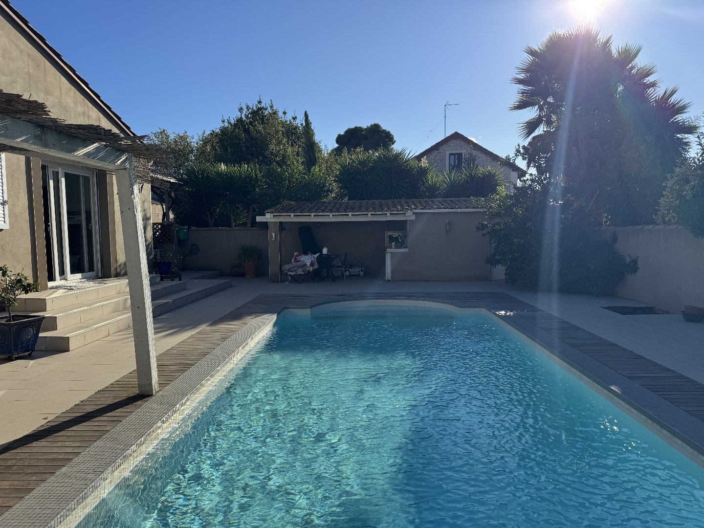 Sur plus de 400 m² de terrain, venez découvrir cette magnifique maison de 104 m², confortable et lumineuse, en excellent état et idéalement située au fond d'une impasse au calme absolu. Elle offre un bel espace de vie avec cuisine ouverte sur le salon-séjour, 3 chambres spacieuses, ainsi qu'un jardin soigneusement entretenu avec piscine pour profiter des beaux jours. Vous apprécierez également sa terrasse conviviale, sa cuisine d'été, ainsi qu'un garage et plusieurs places de stationnement intérieures et extérieures pour un confort optimal. À proximité immédiate des écoles, transports en commun et activités de loisirs, cette villa allie emplacement pratique et qualité de vie.