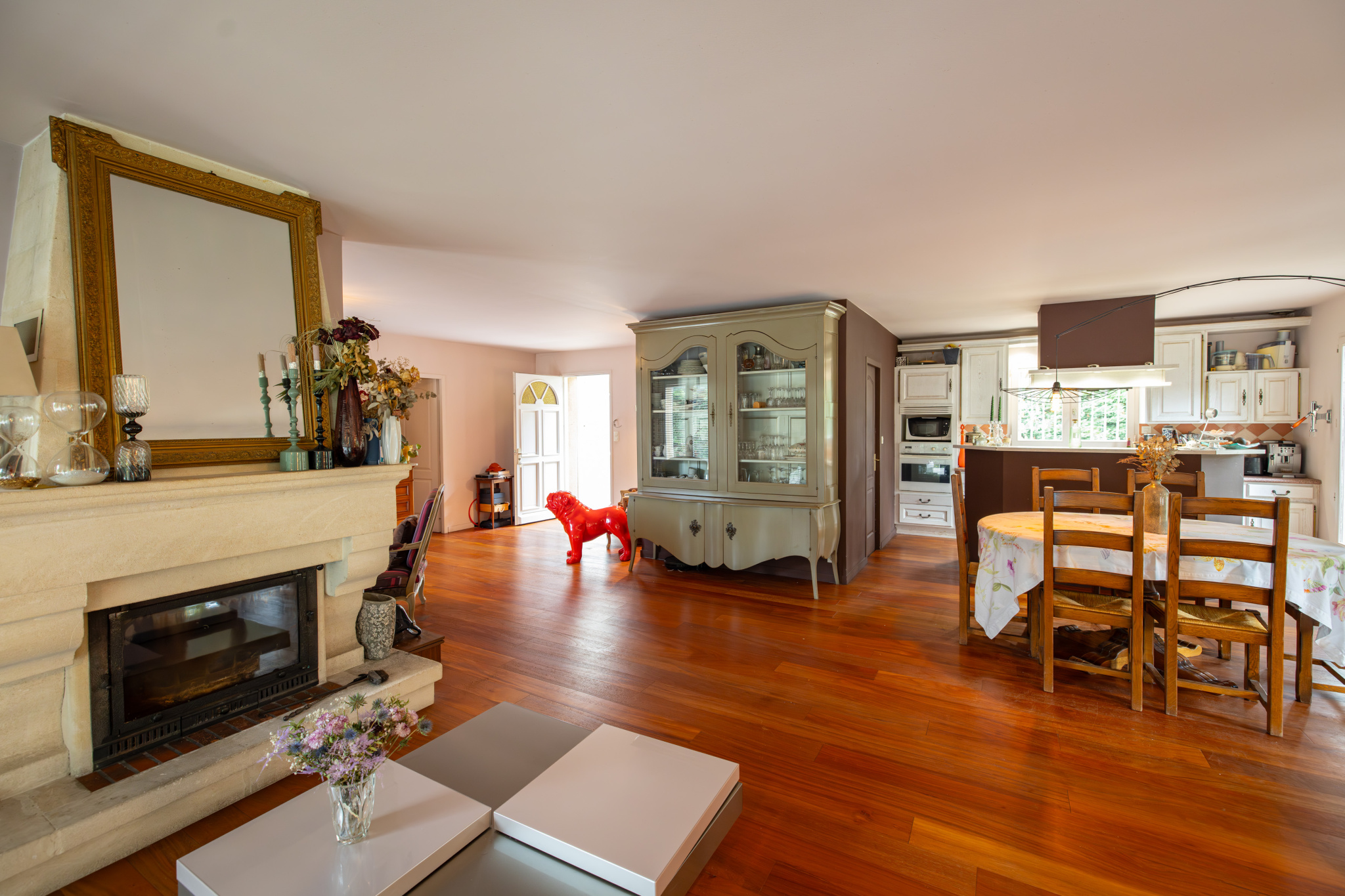 Située dans un environnement paisible et verdoyant, cette maison de 135 m2 édifiée sur un terrain arboré de 2 400 m2 vous offre un cadre de vie privilégié.