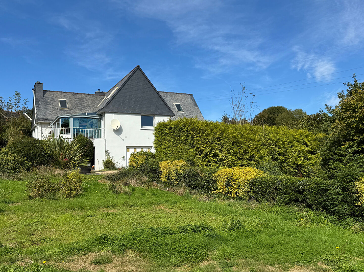 Édifiée au coeur d'un environnement verdoyant et préservé, cette grande maison d'architecte des années 80 séduit par ses volumes généreux et son cadre de vie alliant calme, espace et nature. Dès l'entrée, un vaste hall distribue une cuisine avec espace repas, un grand salon agrémenté d'une cheminée insert ainsi qu'une véranda idéalement exposée sud-ouest, baignée de lumière. Le rez-de-chaussée offre également un bureau, une chambre avec salle d'eau attenante et un wc. A l'étage, l'espace nuit comprend trois chambres, une salle de bain, un WC indépendant, ainsi qu'une pièce en enfilade pouvant accueillir une cinquième chambre ou un espace jeux. Une petite pièce, idéale pour un dressing, complète ce niveau. Un sous-sol complet dispose d'un garage spacieux avec un espace buanderie, un atelier et une pièce de rangement sous la véranda. Érigée sur un terrain de 9400 m² généreusement paysagé, la propriété bénéficie d'un coin potager, d'un pré et d'un bois d'environ 4000 m2, offrant un cadre naturel exceptionnel. La toiture en ardoise de qualité et le ravalement extérieur récent (2023) attestent d'un entretien soigné. Idéalement située, à seulement 1 km du bourg et de l'école primaire, et à environ 6 minutes de Landerneau et Guipavas, cette demeure offre une qualité de vie rare, entre confort familial et sérénité. Pour plus d'informations et une visite contactez Sandrine ANDRE-GENDRON au 07.83.83.75.33. Agent commercial (EI) RSAC 841058985 BREST Les informations sur les risques auxquels ce bien est exposé sont disponibles sur le site Géorisques : https://www.georisques.gouv.fr (4.87 % honoraires TTC à la charge de l'acquéreur.) SANDRINE ANDRE GENDRON (EI) Agent Commercial - Numéro RSAC : 84105898500018 - .
