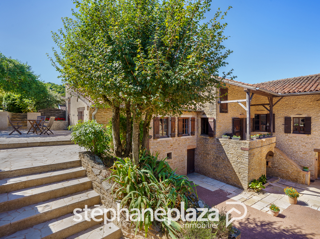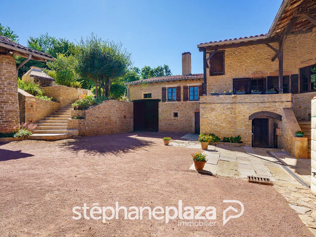 EXCLUSIVITE STEPHANE PLAZA IMMOBILIER. Venez découvrir cette superbe Propriété en pierre édifiée sur un vaste terrain d'environ 2200 m2 avec vue dégagée, dans le Clunysois à seulement 10 minutes de Cluny et 20 minutes de Mâcon (Donzy-le-Pertuis), proche des grands axes en Bourgogne du sud. Divisée en deux habitations indépendantes, cette Propriété dotée de caractère dispose d'un magnifique espace extérieur offrant la perspective d'agréables moments avec vos proches ou vos futurs hôtes. L'habitation principale se compose, au premier niveau, d'un grand séjour, d'une cuisine avec accès à la terrasse, d'une belle chambre et d'une salle de bain avec wc indépendant. L'étage accueille deux grandes chambres, ainsi qu'une grande partie annexe pouvant faire office de bureau. Le sous-sol de la Maison est composé de plusieurs caves, d'un garage, et d'une dépendance attenante à aménager selon vos projets et envies. La seconde habitation se compose actuellement de deux chambres, d'une salle de bain, et d'une pièce de vie avec accès direct à une terrasse et au jardin pour profiter des beaux jours. Une cave et un grand garage complètent cette seconde Maison. Possibilité de réaliser une activité de Chambres d'hôtes avec deux espaces indépendants et privatifs. Les informations sur les risques éventuels auxquels ce bien est exposé sont disponibles sur le site Géorisques : www.georisques.gouv.fr **Honoraires à la charge du vendeur. Pour toute information complémentaire, contactez l'agence Stéphane Plaza Immobilier Mâcon par téléphone. Jean-Baptiste BORZYCKI (EI) Agent Commercial - Numéro RSAC : 844 092 320 - Macon.