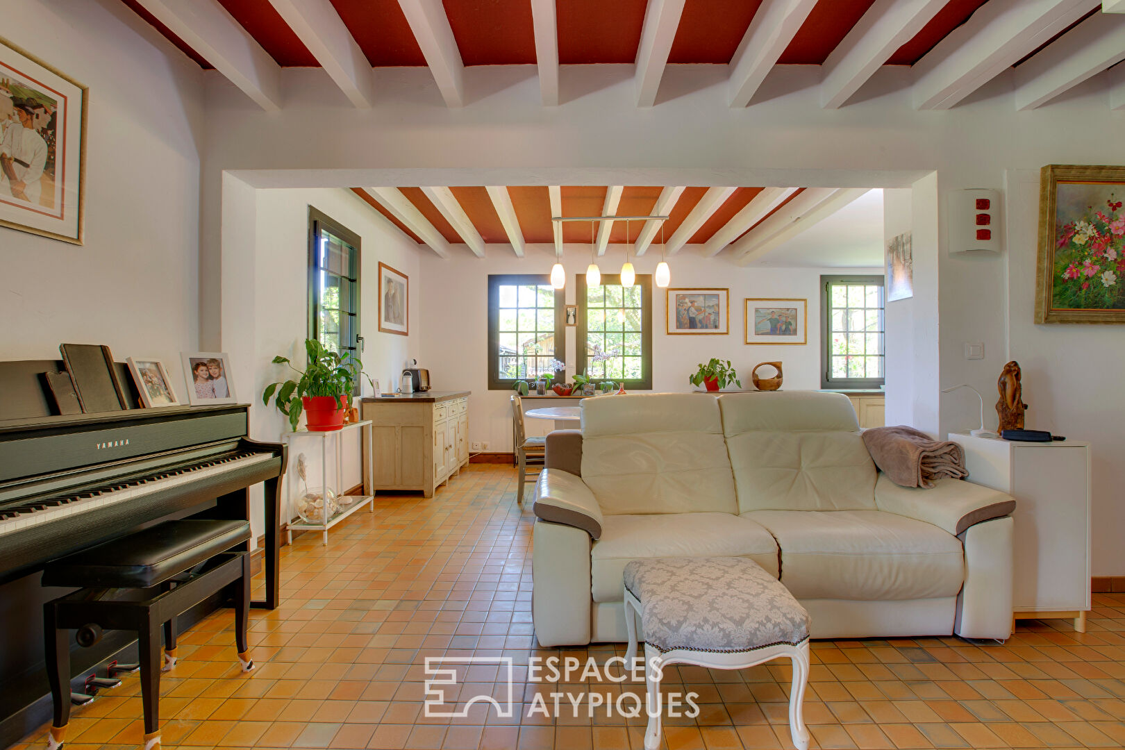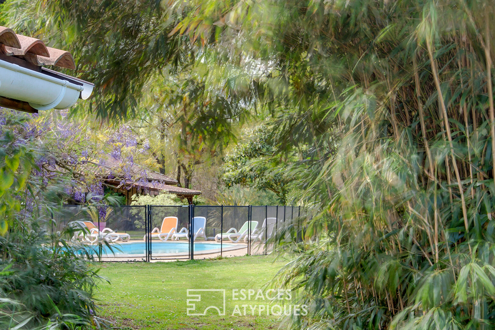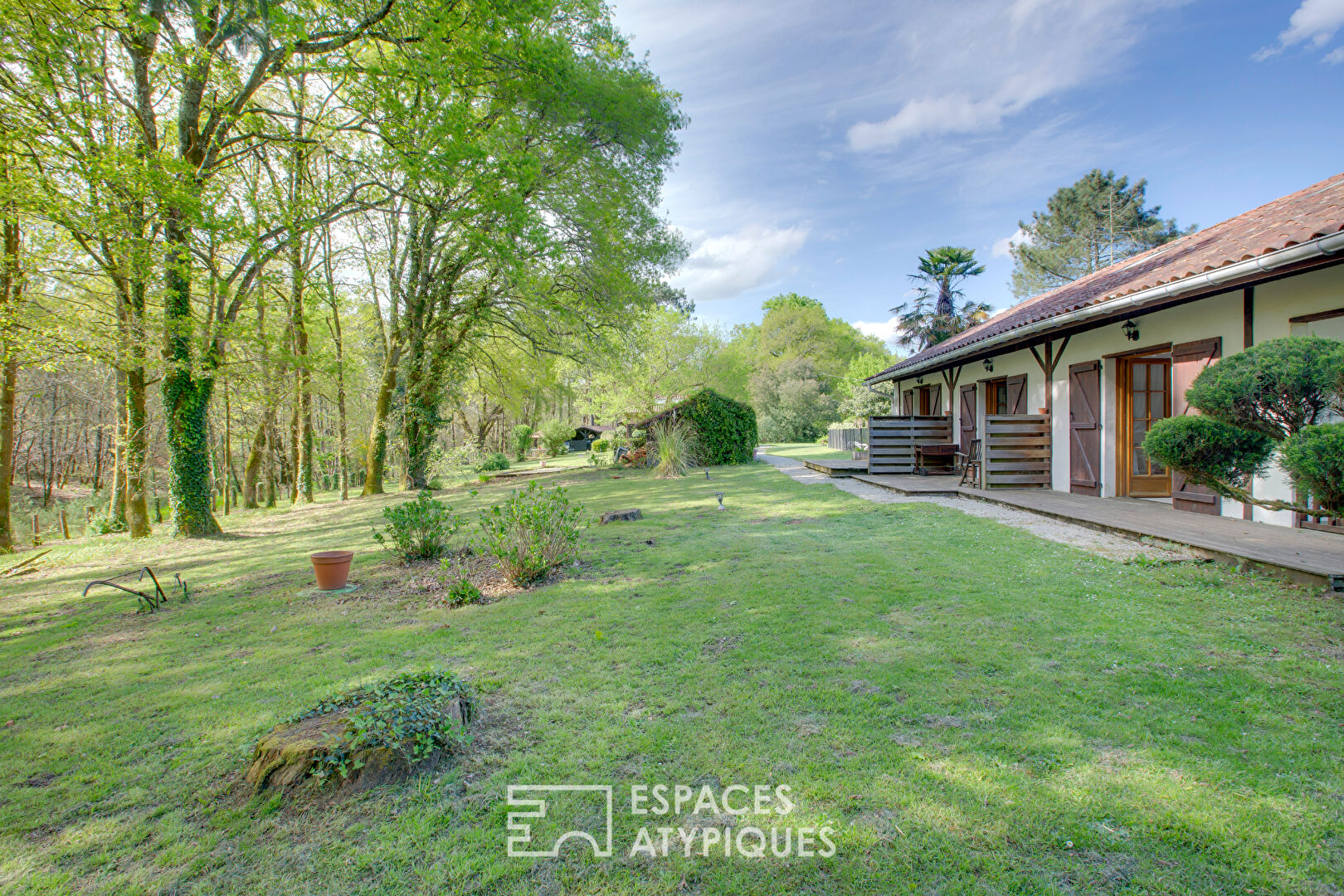 Nichée dans la forêt Magescq, ce domaine plein de charme s'épanouit sur un vaste terrain arboré de 6075 m², offrant un cadre paisible à proximité des grands axes et des commerces. Avec une surface habitable de 286 m², elle se compose d'une maison principale, d'une maison d'hôtes et d'une troisième habitation indépendante, idéale pour recevoir ou envisager une activité professionnelle. Rénovée il y a plus de dix ans, la propriété a su préserver l'authenticité de son architecture tout en s'adaptant aux exigences de confort contemporain. La maison principale s'articule autour d'une pièce de vie où un poêle confère une atmosphère cosy et conviviale. Les matériaux nobles, tels que le bois et la pierre, subliment l'espace et renforcent son caractère authentique. La cuisine ouverte, à la fois fonctionnelle et élégante, s'intègre harmonieusement à l'ensemble. Les trois chambres et la suite parentale offrent un havre de paix au coeur d'un environnement verdoyant. La maison d'hôtes propose trois chambres, chacune dotée d'une salle d'eau et d'un espace détente pour une ambiance unique et chaleureuse. La troisième maison, de plain-pied, dispose de son entrée indépendante et de son propre jardin clos. Son aménagement optimisé comprend un séjour lumineux avec cuisine ouverte, deux chambres et une salle d'eau, offrant ainsi un espace de vie confortable et intime. L'extérieur constitue un véritable écrin de sérénité, où la nature environnante se déploie en toute quiétude. Une piscine, un spa et un sauna viennent enrichir l'expérience de bien-être. Chaque espace extérieur a été pensé pour profiter pleinement de la douceur de vivre landaise. Cette propriété de charme, conjuguant caractère et confort, représente une opportunité rare sur le marché. Son cadre exceptionnel et ses multiples possibilités en font une adresse d'exception, entre authenticité et art de vivre. CLASSE ENERGIE : D/ CLASSE CLIMAT : B (Maison principale) Montant moyen estimé des dépenses annuelles d'énergie pour un usage standard, établi à partir des prix de l'énergie de l'année 2021, 2022, 2023 entre 1160 euros et 1620 euros. CLASSE ENERGIE : D/ CLASSE CLIMAT : B (Maison chambres d'hôtes) Montant moyen estimé des dépenses annuelles d'énergie pour un usage standard, établi à partir des prix de l'énergie de l'année 2021 , 2022, 2023 entre 1710 euros et 2360 euros. CLASSE ENERGIE : D/ CLASSE CLIMAT : B (Troisième maison) Montant moyen estimé des dépenses annuelles d'énergie pour un usage standard, établi à partir des prix de l'énergie de l'année 2021 , 2022, 2023 entre 1400 euros et 1950 euros. Contact : Magali MALBEC au 06 77 52 99 54 RSAC : 490 450 723- DAX MAGALI MALBEC (EI) Agent Commercial - Numéro RSAC : 490450723 - DAX.