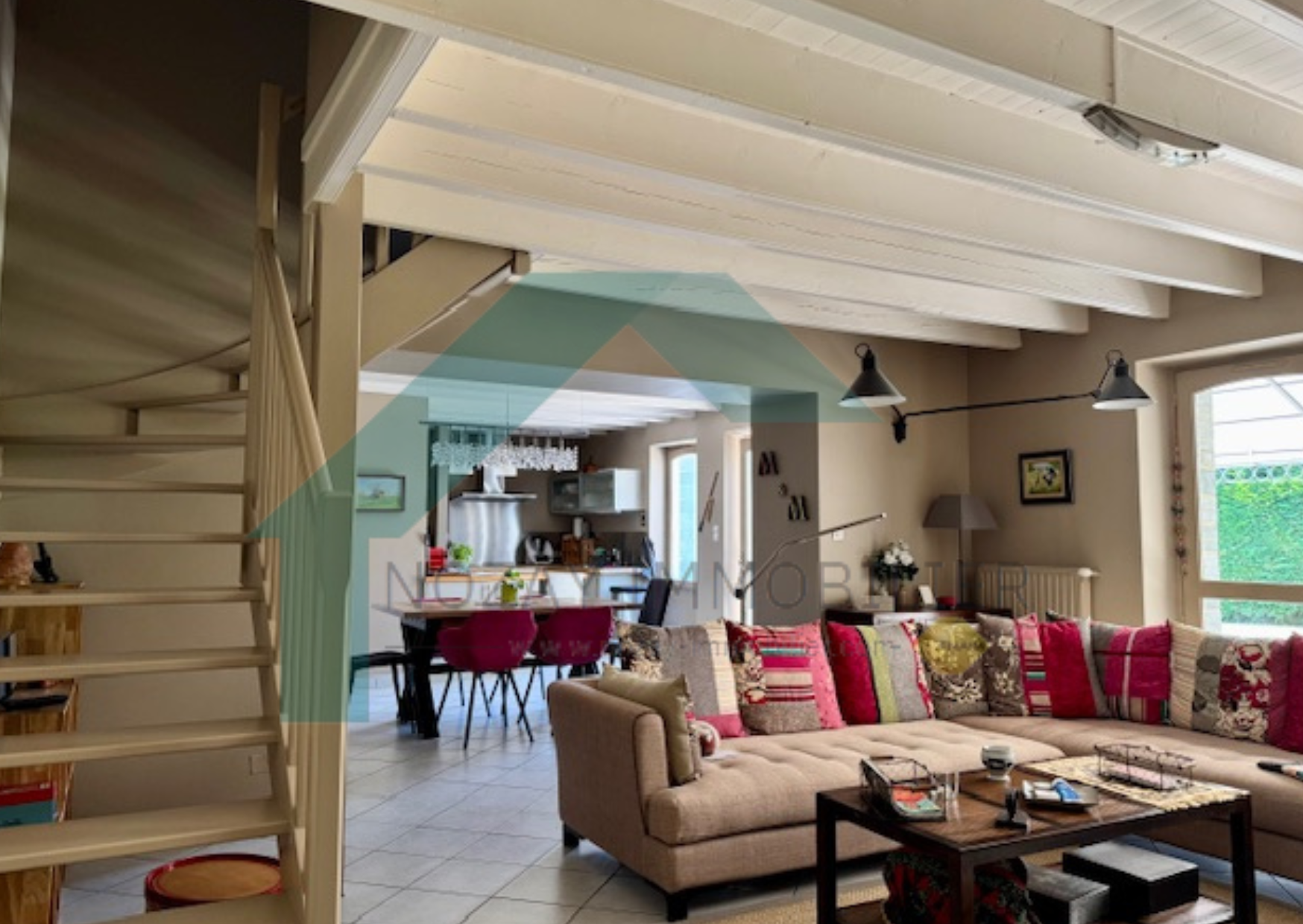 Très jolie propriété en campagne de NOZAY. Cette charmante maison en pierres est située dans un cadre calme et à l'abri des regards. Elle comprend de plain-pied une entrée, une grande pièce de vie lumineuse avec cuisine aménagée et équipée (insert), Une suite parentale (chambre, salle d'eau et wc), un bureau ou chambre de 18 m2. À l'étage, un palier desservant 2 chambres et un bureau, une salle de bains et wc. A l'extérieur vous trouverez une dépendances en pierres avec une salle de jeux aménagée. Un garage avec grenier, un carport. Une cave et une buanderie. Un jardin paysagé avec piscine chauffée, Une grande terrasse avec pergola (plein sud).