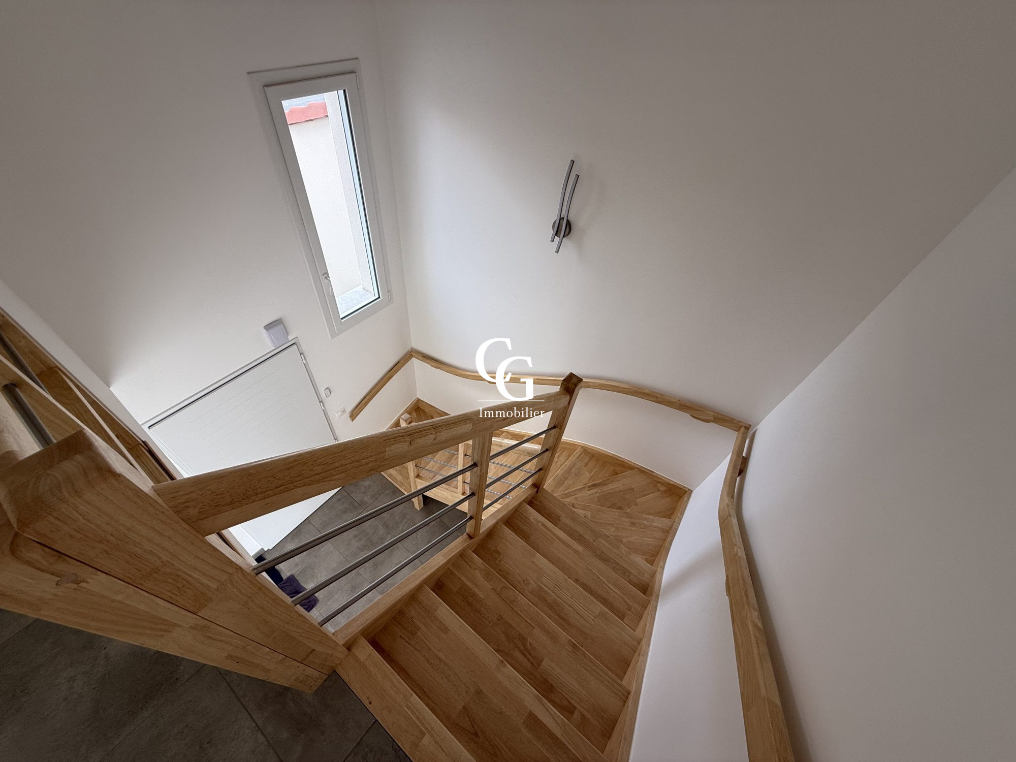 Sur terrain de 424m², maison T4 d'une surface habitable de 86,80m². Au rez-de-chaussée, pièce de vie de 36,24m² avec cuisine ouverte aménagée et équipée (plaques et hotte) donnant sur terrasse et jardin, lingerie, salle d'eau avec wc, 1 chambre. A l'étage, 2 chambres, salle d'eau, wc. Garage attenant de 20m². Dépendance dans le jardin de 19m². Libre de suite.<br><br>Garantie loyers impayés.<br><br>Honoraires de 954 € TTC à la charge du locataire comprenant 260 € TTC pour l'état des lieux. Loyer de base 1035 €/mois. Provision sur charges 20 €/mois, régularisation annuelle. Dépôt de garantie 1 035 €. Classe énergie C, Classe climat C Montant moyen estimé des dépenses annuelles d'énergie pour un usage standard, établi à partir des prix de l'énergie de l'année 2023 : entre 581.00 et 787.00 €. Les informations sur les risques auxquels ce bien est exposé sont disponibles sur le site Géorisques : georisques.gouv.fr. <br>