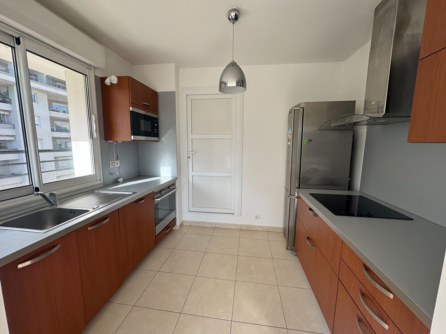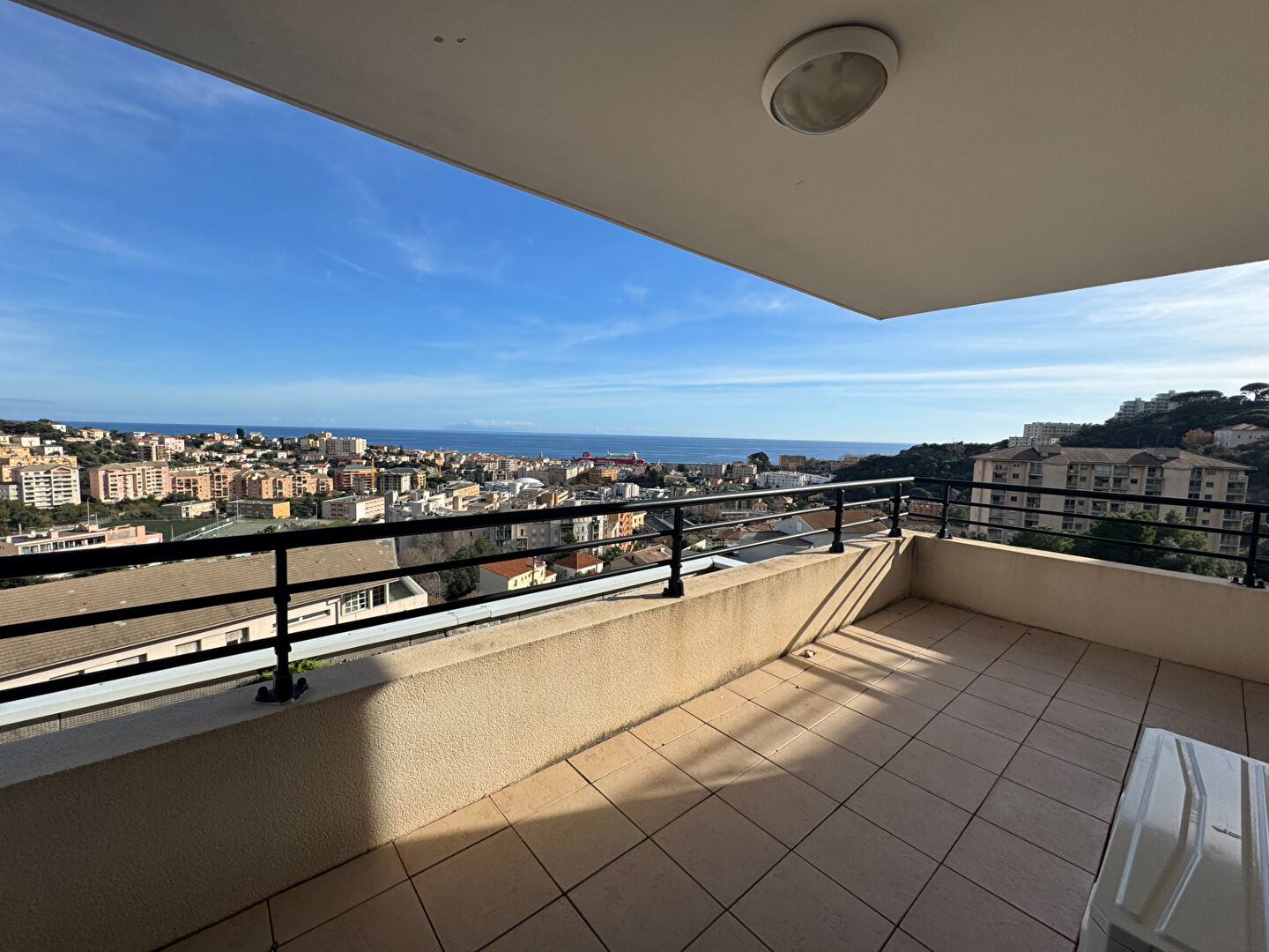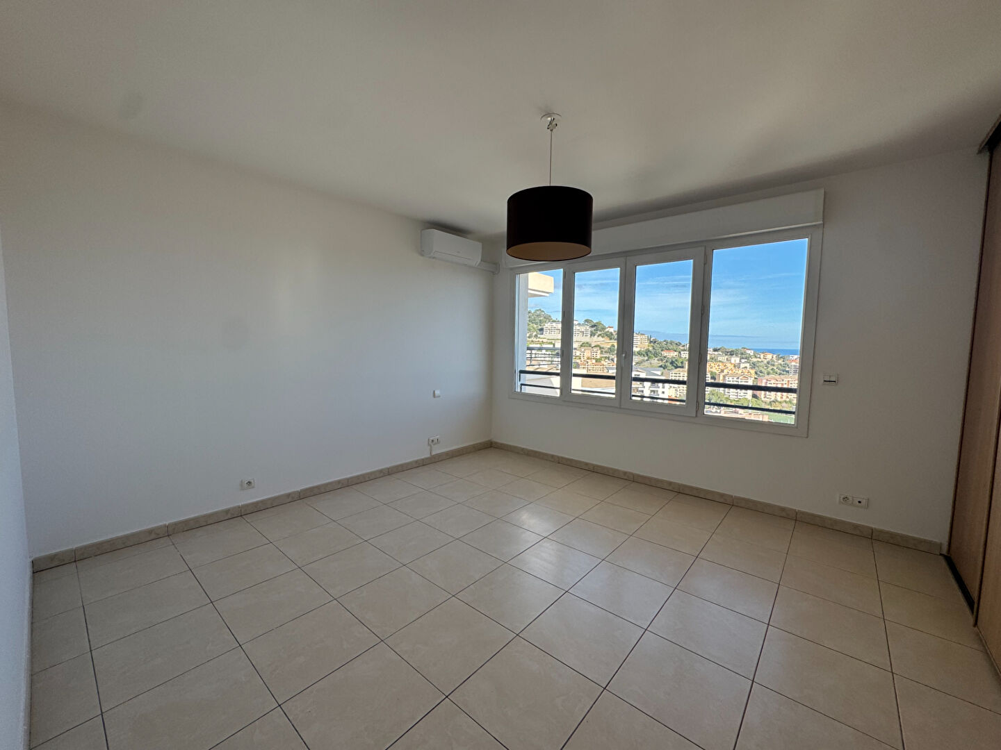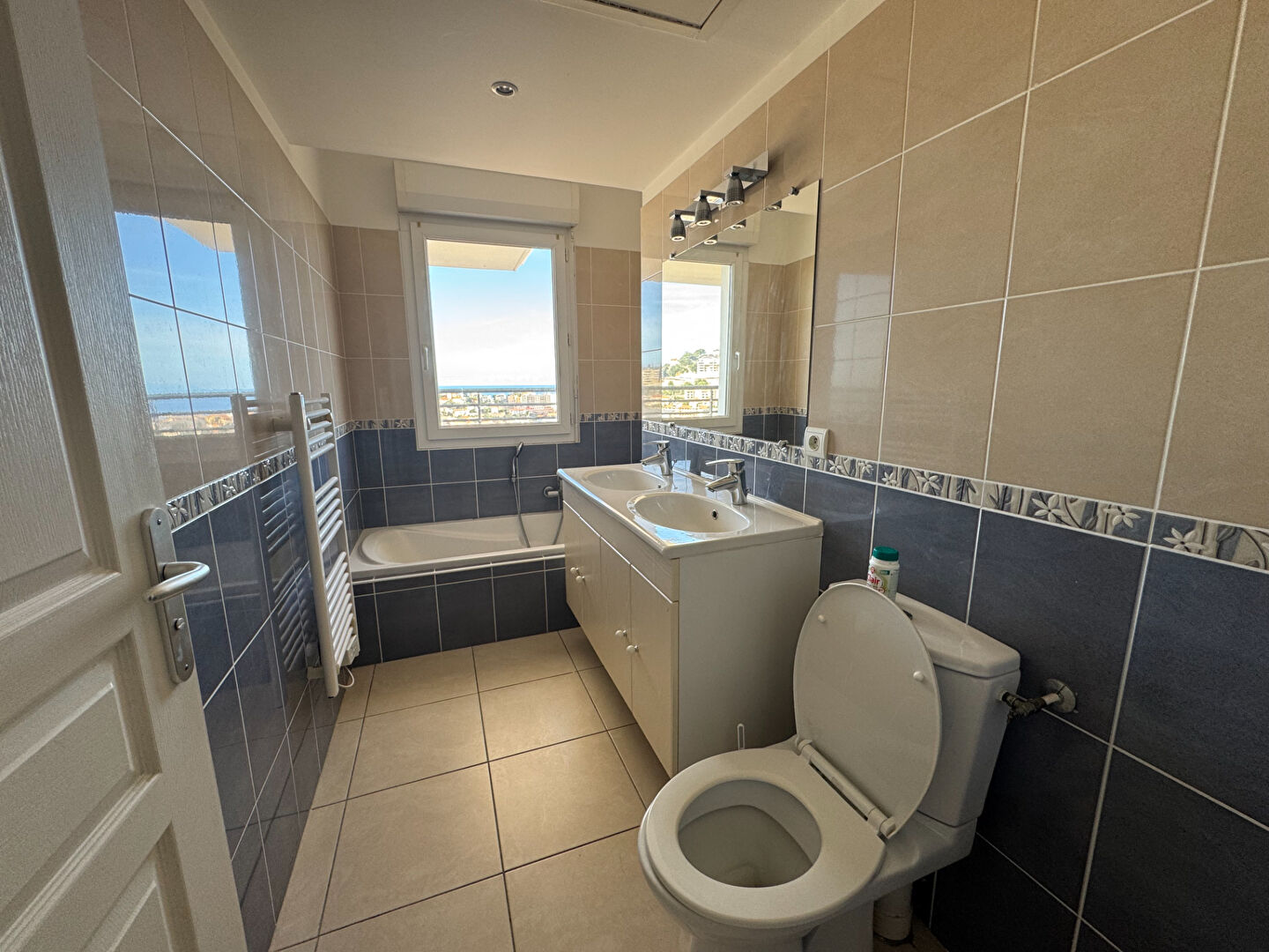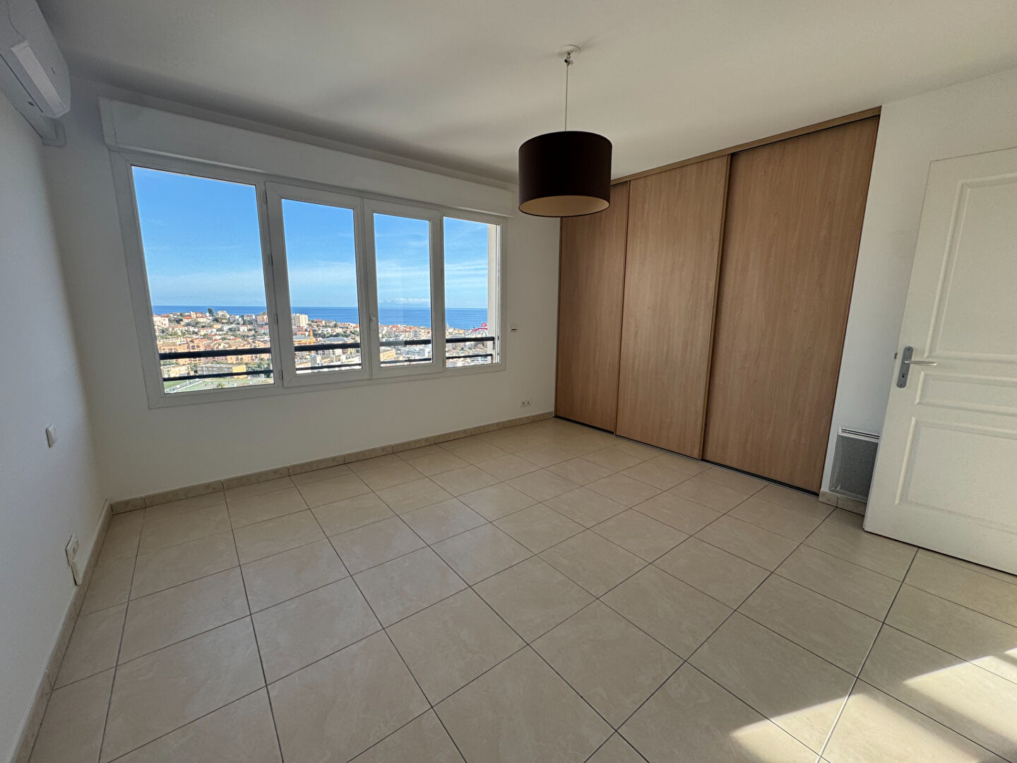 Appartement en duplex de Type 5, situé au 5ème étage avec ascenseur, composé au 1er niveau d'un séjour climatisé, une salle à manger, une cuisine équipée (éléments hauts et bas, plaque, hotte, four, lave-vaisselle, réfrigérateur, micro-ondes), un wc et une grande terrasse avec vue mer (55 m²) ; puis au second niveau : un dégagement, 2 chambres avec placards aménagés et climatisations, 2 chambres dont une avec placard aménagé, une salle de bains avec wc, une salle d'eau et 2 balcons. Le logement comprend un garage double en sous-sol.
