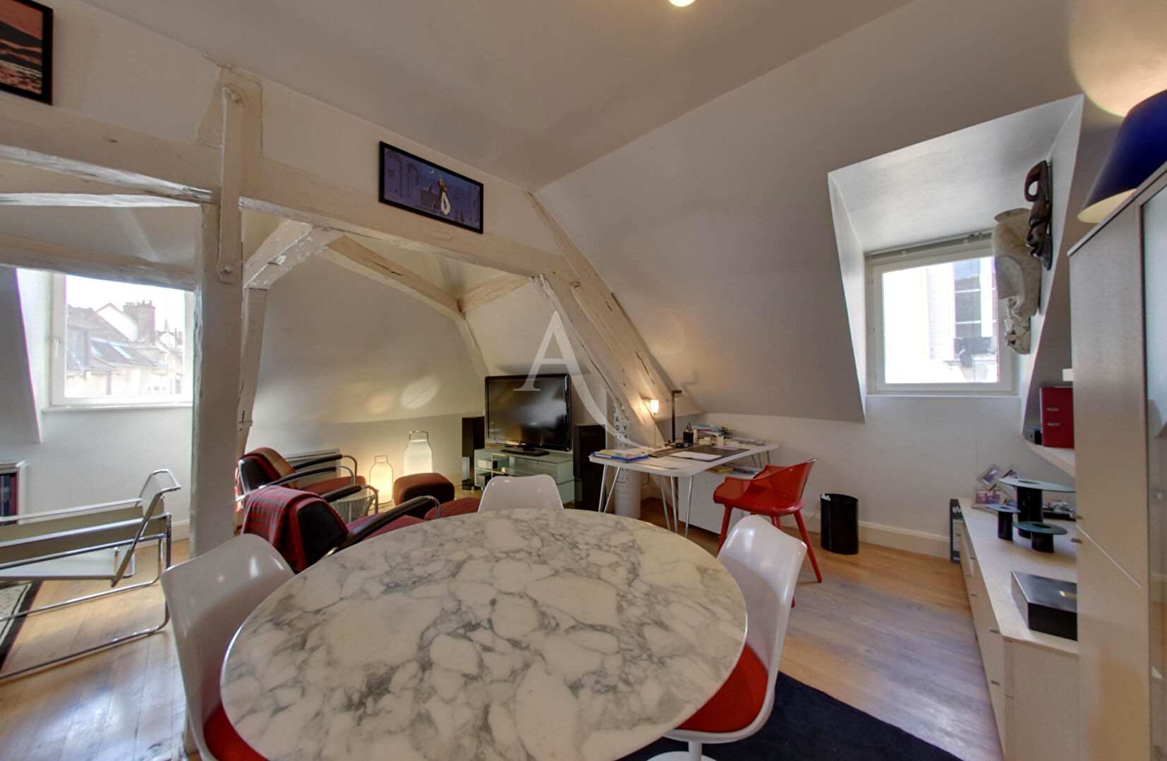 L'agence immobilière L'Adresse Auxerre vous présente cet immeuble de caractère situé dans le quartier du Pont, aux pieds de l'Église Saint-Pierre et du Théâtre, au coeur d'un secteur animé et recherché. Ce bien mixte propose au rez-de-chaussée un vaste local professionnel de 125 m² et sa cave aménagée de 80 m², actuellement loué, offrant une source de revenus immédiate, et aux étages un appartement en duplex de 140 m² accessible par une entrée indépendante. La façade à colombages, les belles poutres apparentes et les volumes généreux confèrent au duplex une luminosité et un cachet rares ; l'agencement permet une division aisée en deux logements, augmentant les possibilités de rendement locatif ou d'usage. Classement énergétique : local C, appartement D, informations utiles pour estimer la performance énergétique et les futures optimisations. L'environnement est particulièrement attractif : commerces de proximité et cafés à quelques minutes à pied, marché local et services municipaux dans le quartier, ainsi que des établissements scolaires accessibles pour les familles. Stationnement à proximité pour résidents et visiteurs. Idéal pour investisseur souhaitant conserver un rendement immédiat tout en développant le potentiel locatif ou pour utilisateur recherchant un immeuble avec espace commercial intégré. Visite virtuelle disponible.