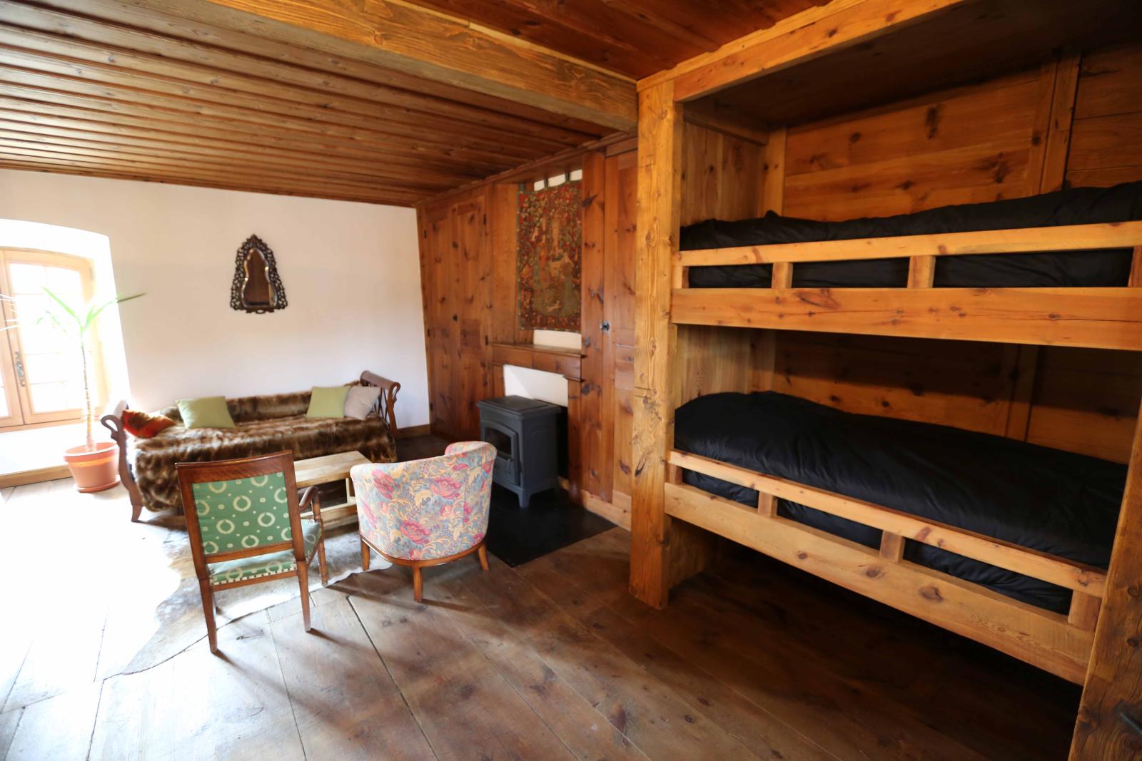 - Au deuxième étage, un espace nuit pouvant accueillir dix couchages ( chambres aménagées comme le logis seigneurial de l'époque), deux salles d'eau et deux toilettes
