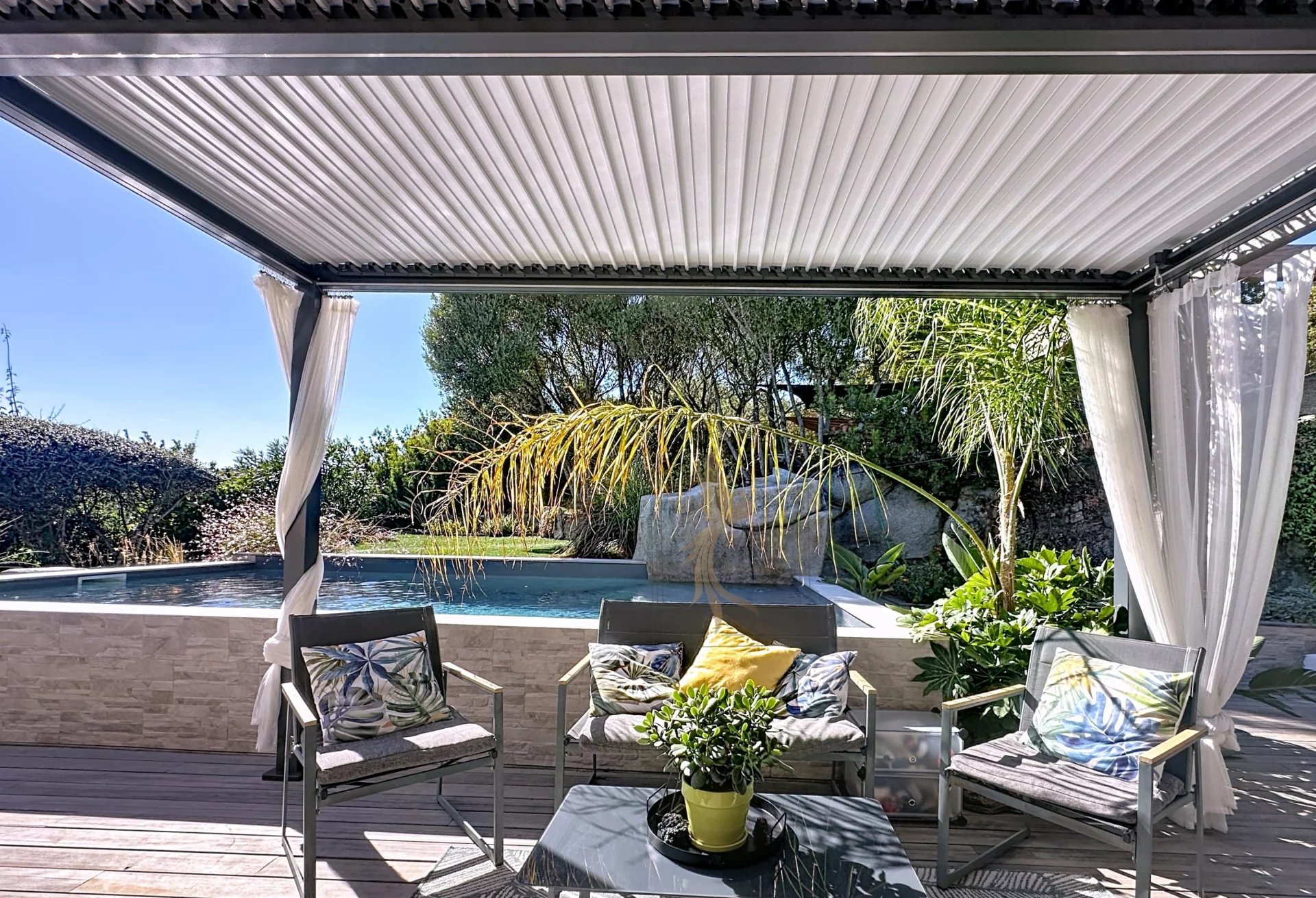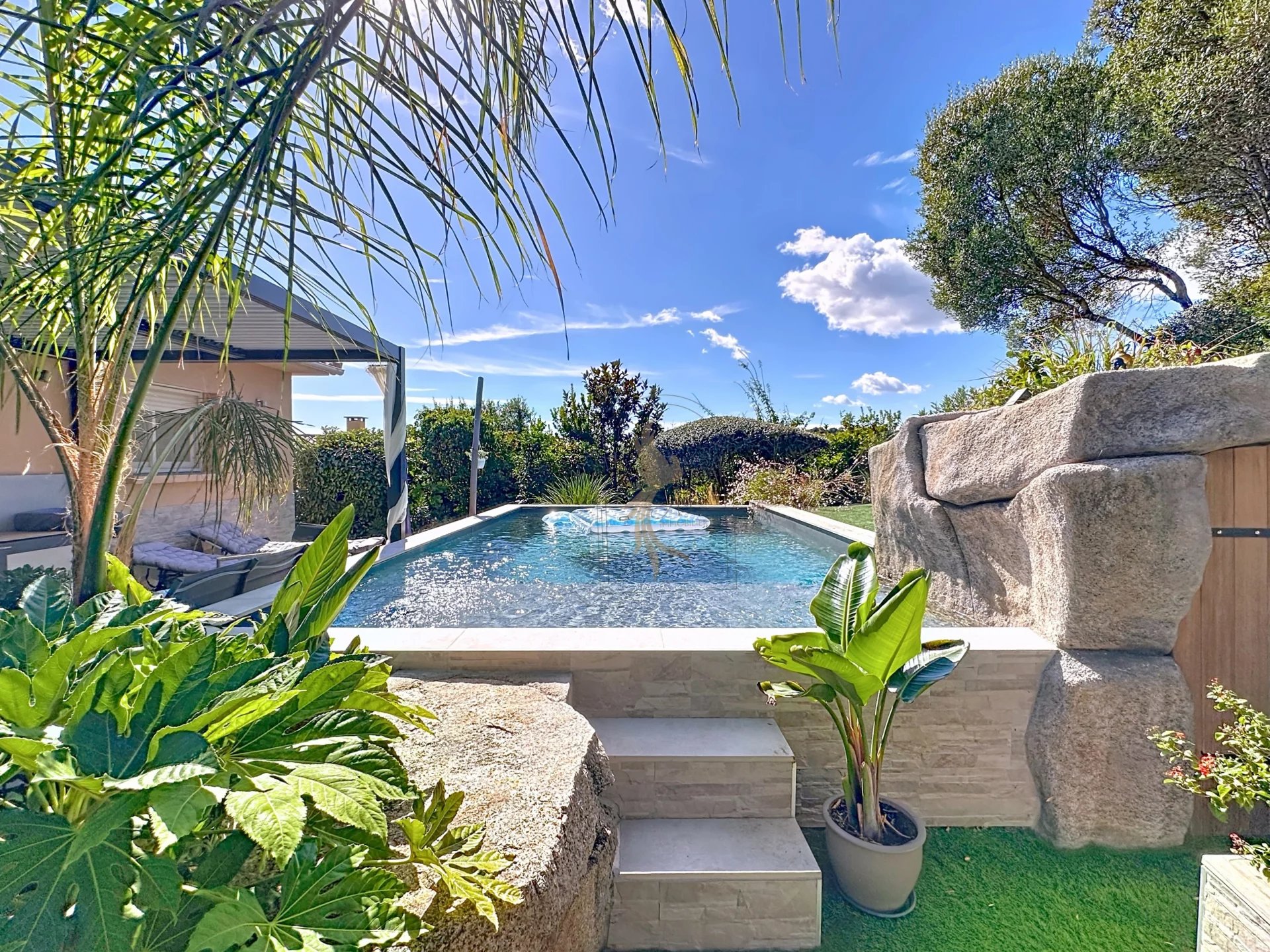 Située à Sainte-Lucie de Porto-Vecchio, à moins de 2 minutes du centre et 6 minutes des plages de Pinarello, profitez de son emplacement idéal. Cette villa individuelle de 197m2 séduit par son environnement calme et verdoyant, au cœur d’un terrain arboré de 910 m². À l’étage, elle offre : Une cuisine ouverte et équipée, donnant sur un salon-séjour chaleureux avec insert. Une grande baie vitrée inondant la pièce de lumière et ouvrant sur une terrasse avec vue dégagée mer et montagne. Le coin nuit dispose de 3 chambres, dont une suite parentale avec salle de bain et douche, ainsi qu'une salle d’eau supplémentaire. En rez-de-jardin, un T1 bis indépendant de 47m2 vient compléter l’espace, idéal pour accueillir famille et amis ou développer un revenu locatif. Vous trouverez également une pièce polyvalente (bureau ou chambre supplémentaire) ainsi qu’une grande buanderie. À l’extérieur, une piscine au sel (3,45 x 6,70 m) s’intègre parfaitement dans le jardin paysager, pour profiter des beaux jours en toute tranquillité.