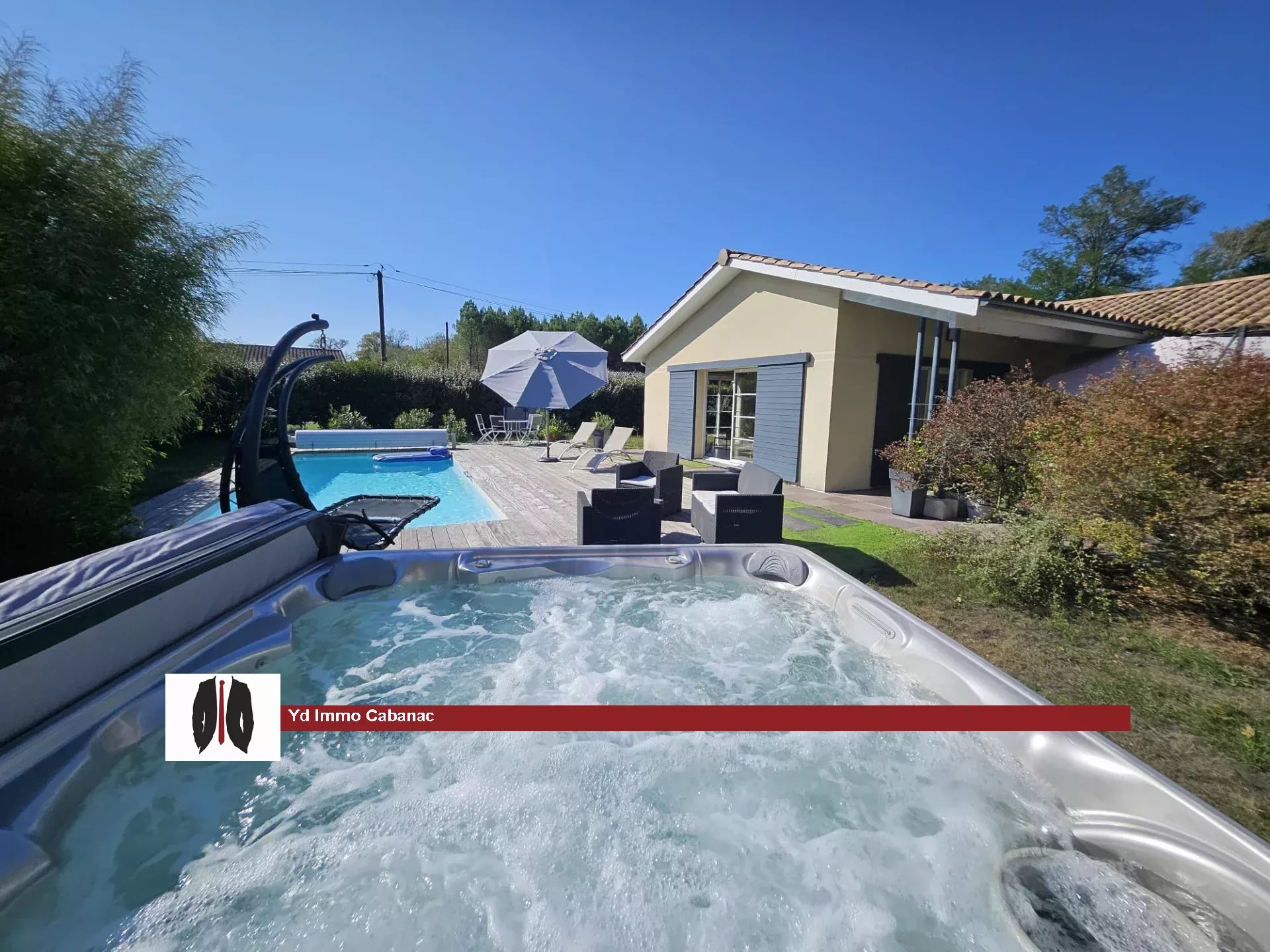 Maison de plain pied située dans un hameau au calme avec matériaux de qualité. Cette jolie maison se compose d'une entrée avec placard, un salon séjour avec lumière traversante, une cuisine aménagée, un cellier attenant, un garage, trois belles chambres avec placards. A l'extérieur une grande terrasse, une piscine, un jacuzzi, un abris de jardin. A seulement 8 minutes de Landiras ou de Saint-Symphorien . Contactez vite votre agence YDIMMO ydcabanac@gmail.com