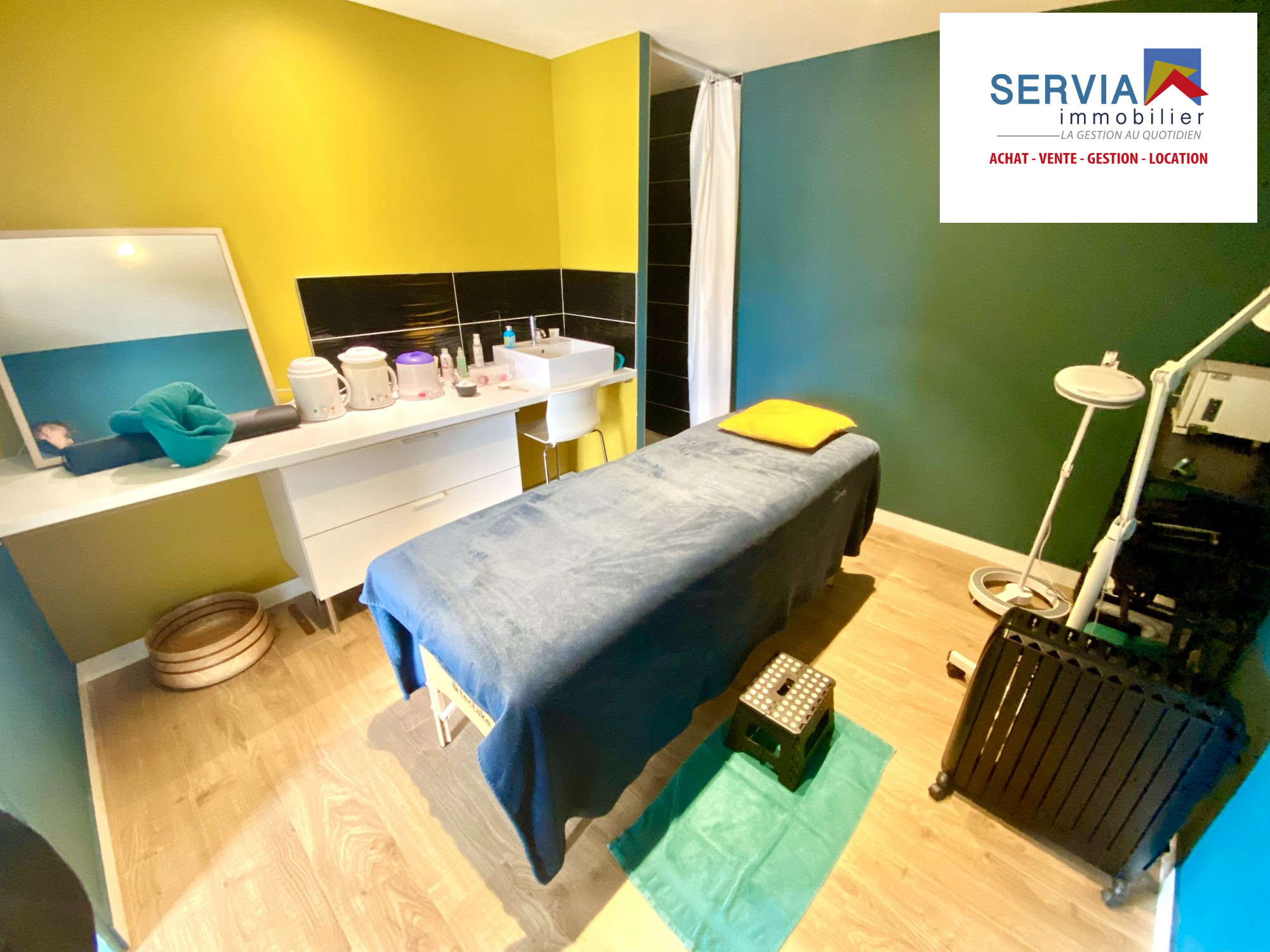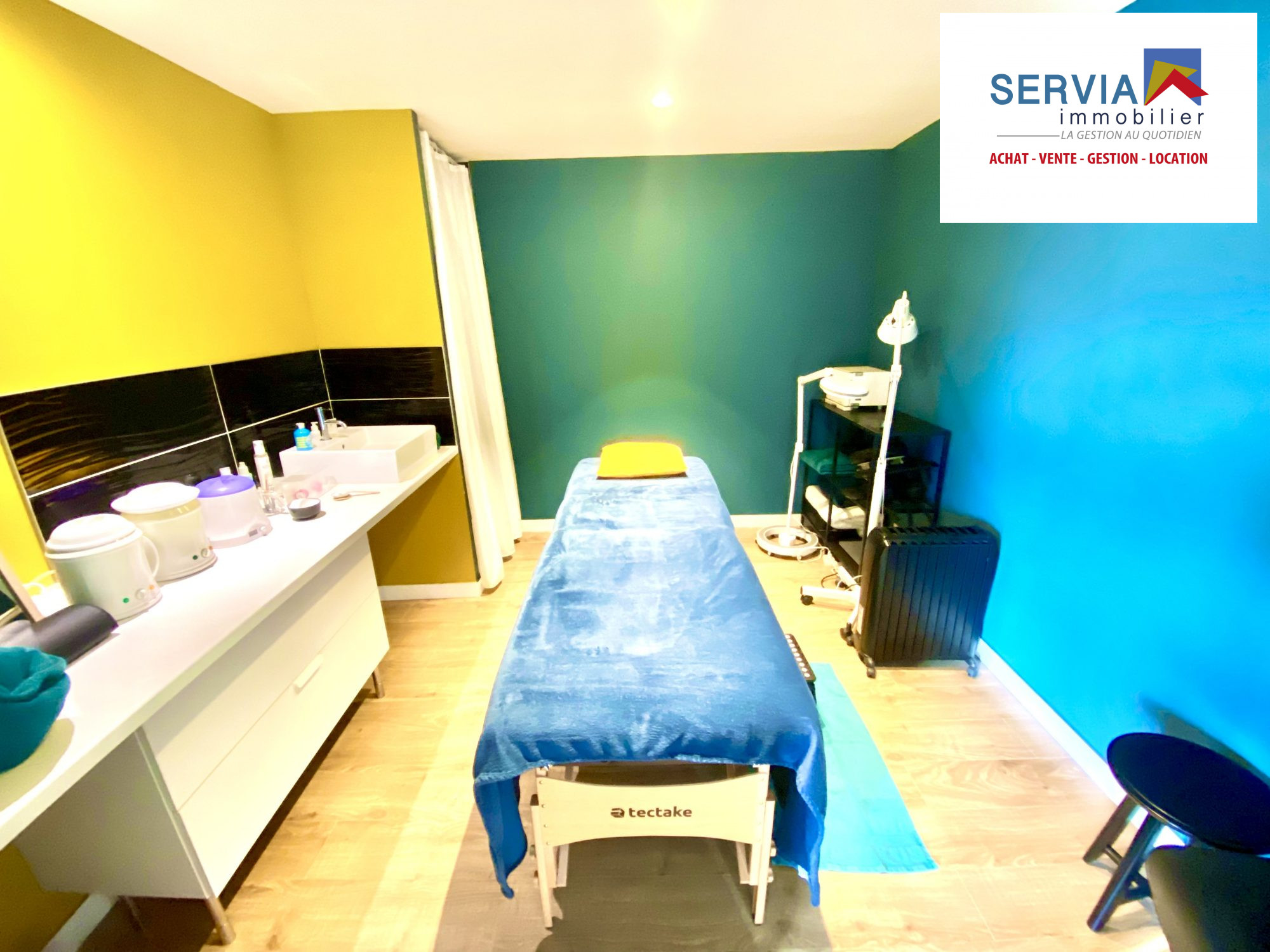 Comprenant : un accueil pouvant faire office de salle d'attente, avec une grande vitrine, deux pièces closes dont une avec douche et lavabo, un WC séparés( laves mains) la ligne, un couloir menant à une réserve( évier, meuble sous évier et branchement machine)