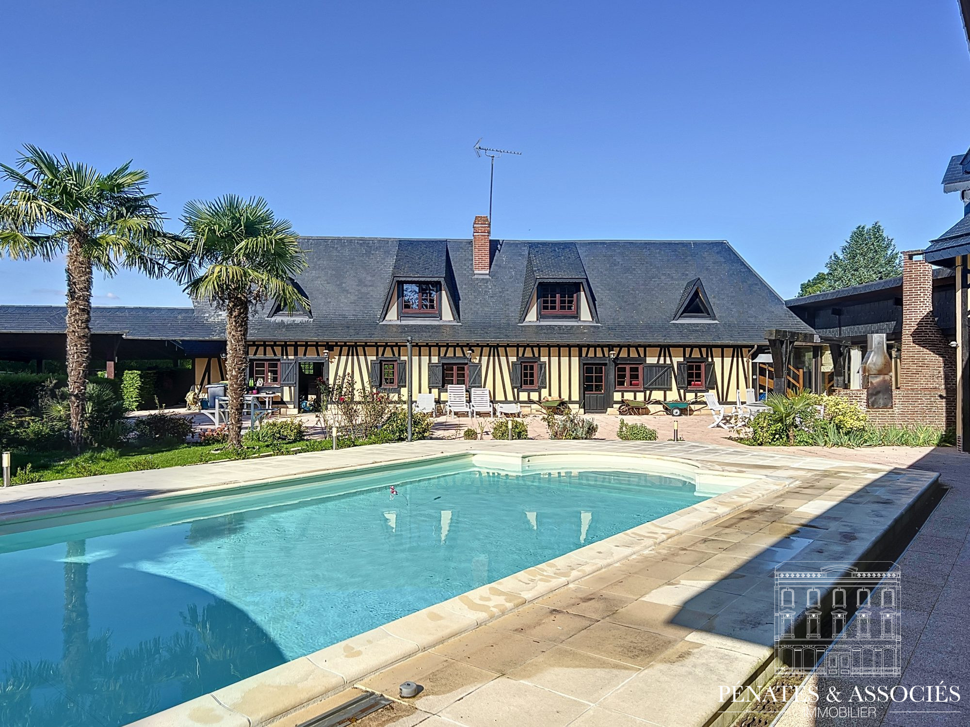 Pénates et Associés vous présente cette propriété de caractère nichée sur sa vaste parcelle à 10 minutes de Bourtheroulde, dans un environnement calme et préservée des regards et des nuisances.