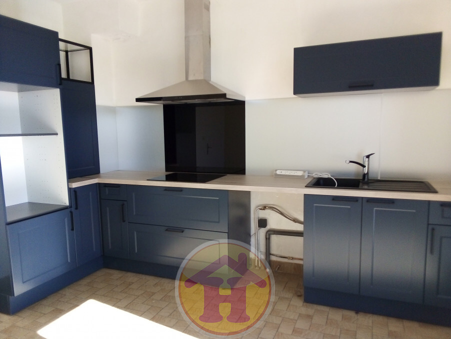 NEUVE aménagée et équipée ( plaque et hotte), grand séjour avec Balcon ( exp SUD), 3 chambres dont deux avec placards, salle de bains ( douche et baignoire) WC.