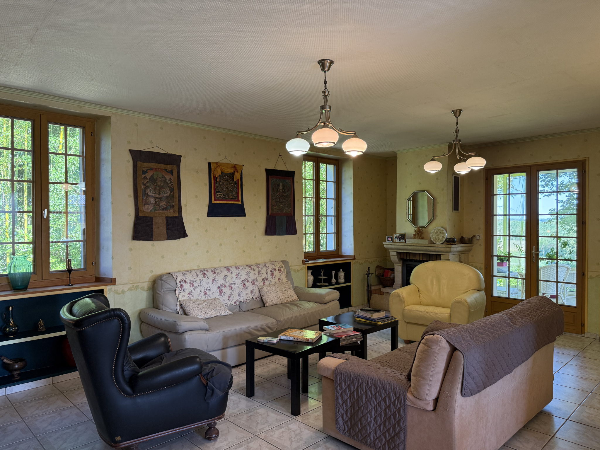 Maison principale -- 152 m2 habitables La maison se compose en rez-de-chaussée d'un vaste séjour chaleureux avec insert bois, d'une cuisine, d'une véranda lumineuse, de trois chambres, d'une salle de bain, ainsi que d'une buanderie/chaufferie. À l'étage, vous trouverez deux chambres supplémentaires, une seconde salle de bain et des combles exploitables.