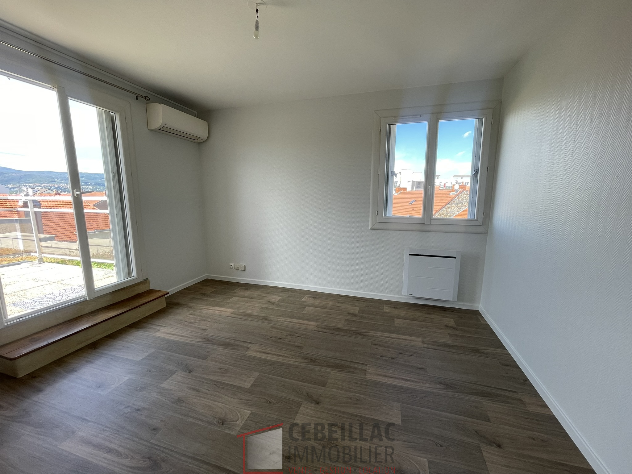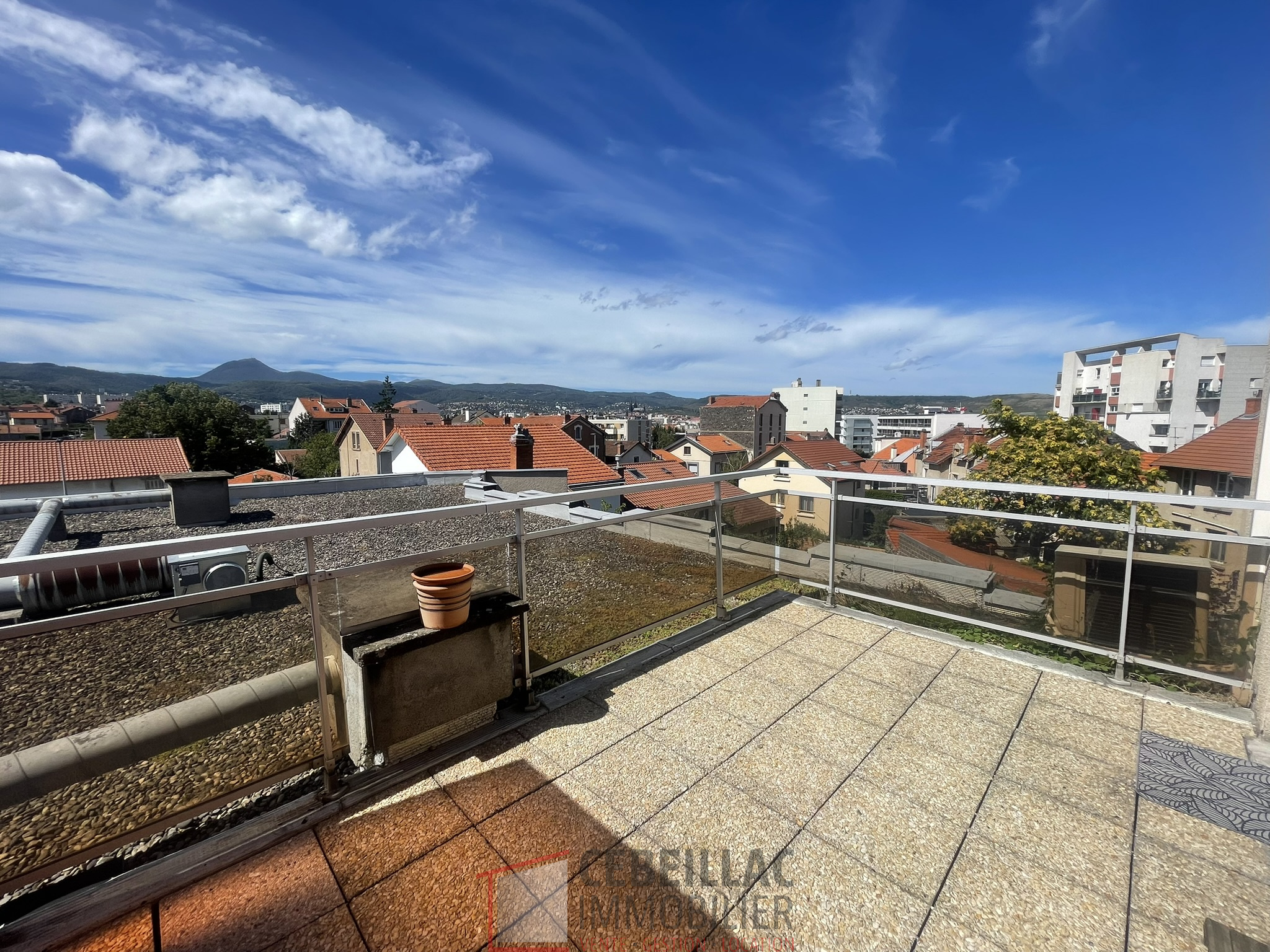 Appartement récemment repeint, très lumineux, de type 2, de 29,82 m2 habitables. Il est situé au troisième et dernier étage, sans ascenseur, et dispose d'une superbe terrasse de 10 m2 offrant une vue dégagée sur le Puy de Dôme.Il comprend une entrée avec penderie ; une kitchenette équipée de plaques vitrocéramiques ouverte sur un séjour lumineux donnant accès directement à la terrasse ; une chambre indépendante ; ainsi qu'une salle de bains avec WC. Vous bénéficierez également d'une double exposition ouest et nord, assurant une belle clarté tout au long de la journée. Un parking privé vient compléter ce bien. Loyer : 570 EUR charges comprises, dont 130 EUR incluant l'eau froide, l'entretien et l'électricité des parties communes, le chauffage de base et la taxe des ordures ménagères.Dépôt de garantie : 420 EUR. Honoraires d'agence : 328,02 EUR TTC, à la charge du locataire, dont état des lieux d'entrée. Les informations relatives aux risques sont consultables sur georisques.gouv.fr ; l'ensemble de nos biens ainsi que notre barème d'honoraires sont accessibles sur le site Cebeillac Immobilier, 8 bis cours Sablon, Clermont-Ferrand.