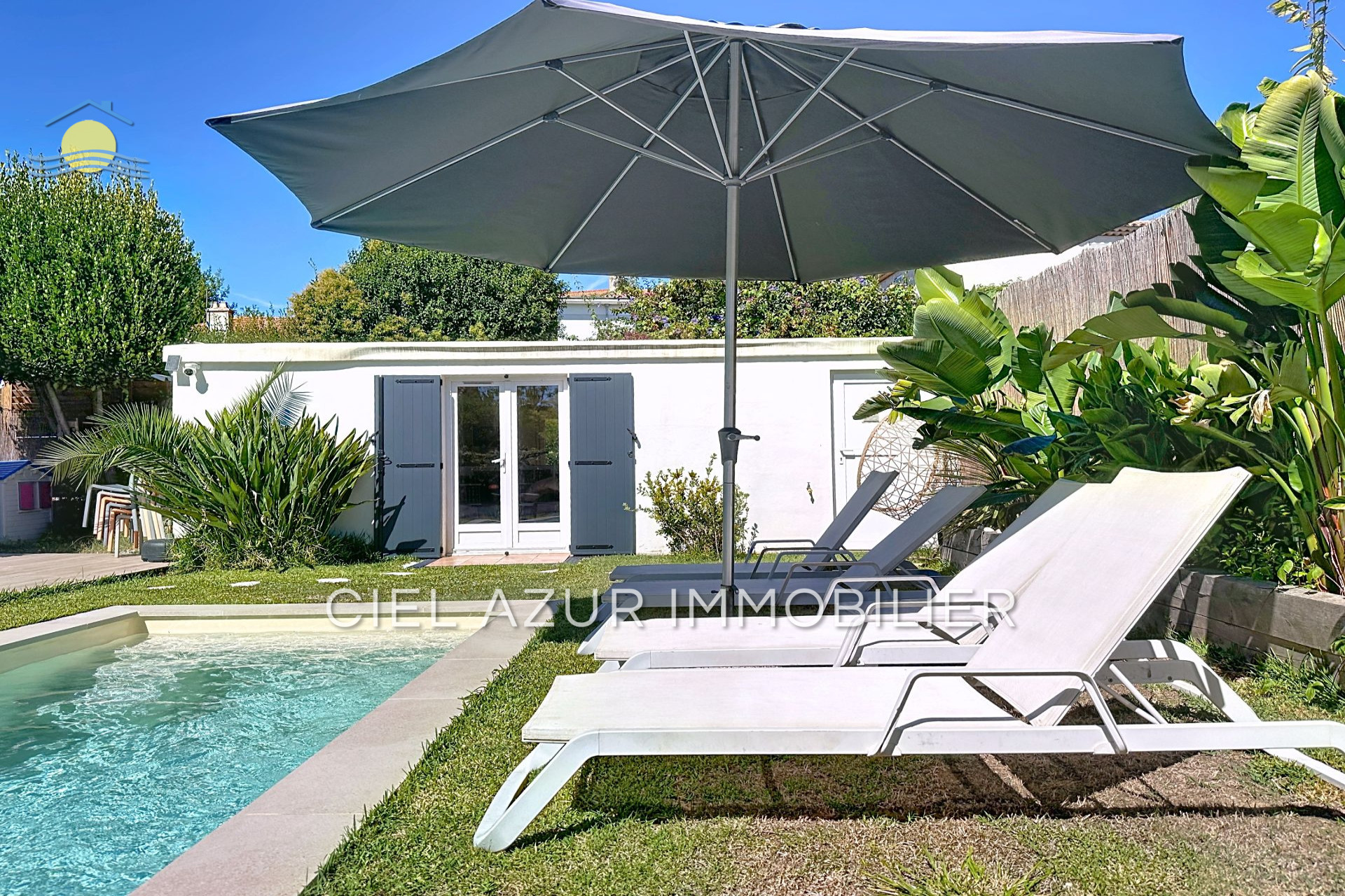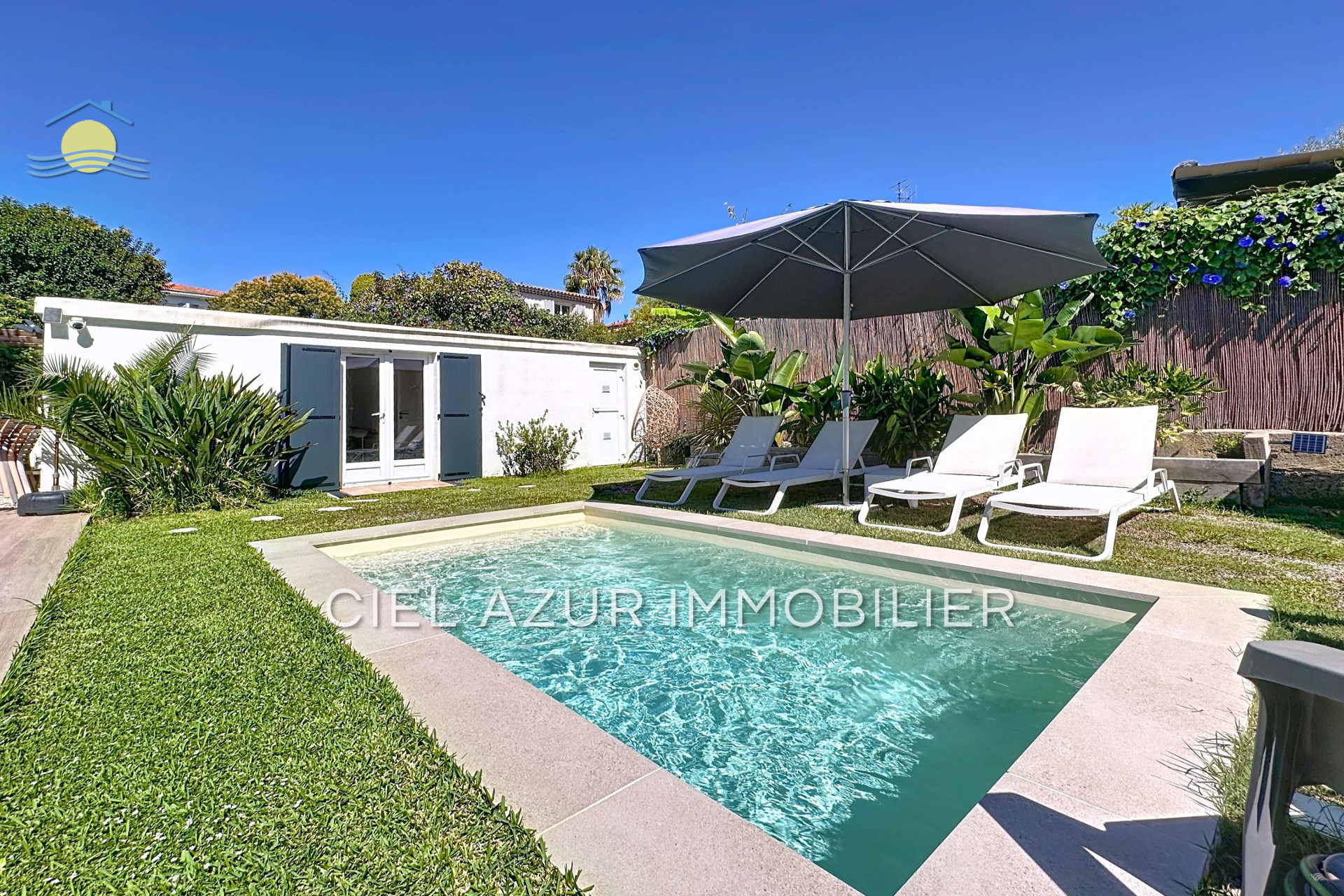 Cette magnifique maison individuelle de plain-pied est située dans le quartier bord de mer de Juan-les-Pins. Cette demeure est idéale pour une famille car elle a une superficie de 100 m² et un spacieux séjour de 37 m² avec cheminée. Celle-ci comprend une cuisine américaine, trois chambres, une salle de bain, un WC et une buanderie. Vous profiterez également d'un grand terrain de 500 m², propice à la détente grâce à sa terrasse, la piscine ainsi que le jardin exposé Est-Ouest.