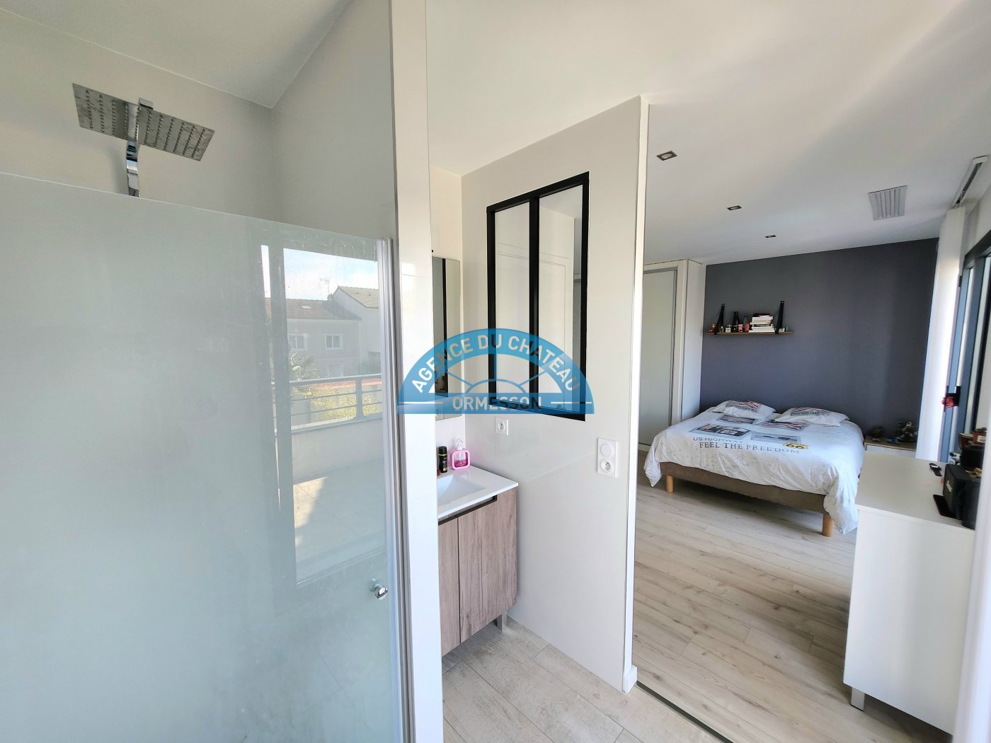 Magnifique Maison d'architecte de 2020 (décennale) vous offrant : entrée avec rangements, séjour triple traversant de 55m2 donnant sur terrasse et jardin orienté plein sud avec piscine à sel (7mx3,80m), cuisine entièrement aménagée et équipée, cellier, une chambre, wc séparé avec lave-mains, buanderie avec douche, grand garage ( borne électrique)