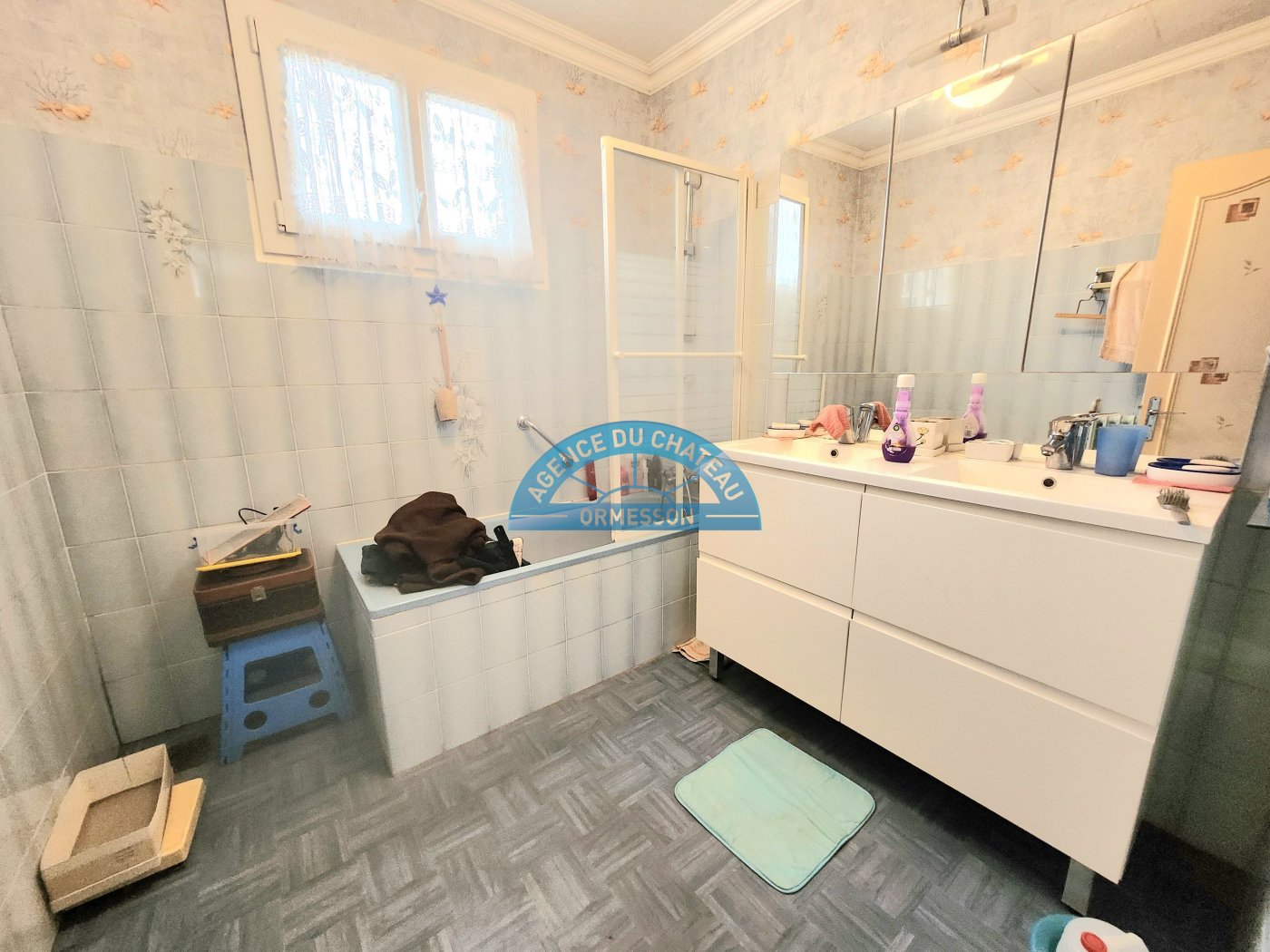 A proximité du Château, maison individuelle sur un terrain de 500m², composée d'un rez de chaussée (hauteur sous plafond 2,17m) vous proposant : buanderie, salle d'eau avec wc, chambre de 24 m2 donnant sur véranda de 9m² et 2 grands garages,