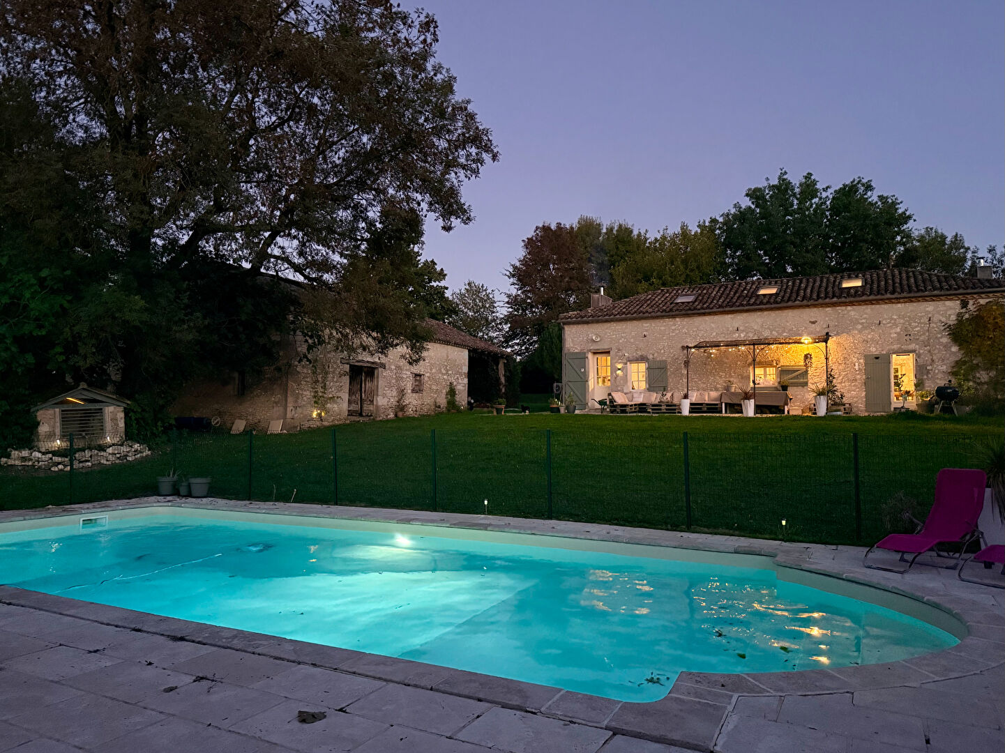 SITUATION : Située à Castillonnès, dans un cadre paisible et verdoyant, cette charmante propriété en pierre profite d'un environnement champêtre tout en restant proche du centre du village et de ses commodités. ENSEMBLE IMMOBILIER : L'ensemble se compose d'une maison d'habitation sur deux niveaux, d'une chambre d'été indépendante, d'une grange, de dépendances en pierre, d'un puits et d'une belle piscine avec terrasse et pergola, le tout sur un vaste terrain arboré sans vis-à-vis. MAISON PRINCIPALE : Au rez-de-chaussée, une agréable pièce de vie avec cuisine ouverte s'articule autour d'un poêle à bois Godin, offrant un espace convivial et lumineux. Une salle d'eau avec douche, lavabo et WC complète ce niveau, ainsi qu'un salon avec cheminée pouvant également servir de chambre pour une vie de plain-pied. A l'étage, un palier aménagé en bureau dessert deux chambres, chacune disposant de sa propre salle d'eau avec WC. DÉPENDANCES : Attenantes à la maison, trois anciennes porcheries en pierre offrent un joli potentiel pour du stockage ou un projet d'agrandissement. Une chambre d'été indépendante avec salle d'eau et WC permet d'accueillir famille ou amis en toute intimité. La grange, déjà équipée en eau, électricité, fondations et chape, présente une belle opportunité d'aménagement ? notamment pour un projet de gîte(s) avec entrées séparées. EXTÉRIEUR : Le terrain d'environ 7959 m² , joliment paysagé et bordé d'arbres fruitiers et de chênes, comprend plusieurs terrasses, un puits sécurisé avec robinet et point d'eau, ainsi qu'un grand espace de stationnement. Une piscine au chlore 10x5m sécurisée par clôture et portillons, s'accompagne d'une large terrasse ensoleillée avec pergola, local technique complet et possibilité d'installation d'une pompe à chaleur. INFORMATIONS COMPLÉMENTAIRES : Assainissement individuel par fosse septique. Plans 3D et plans de sol à disposition Projet d'agrandissement avec plans à disposition Projet d'aménagement de la grange en 2 gîtes avec entrées séparées à disposition Possibilité de libérer les lieux rapidement