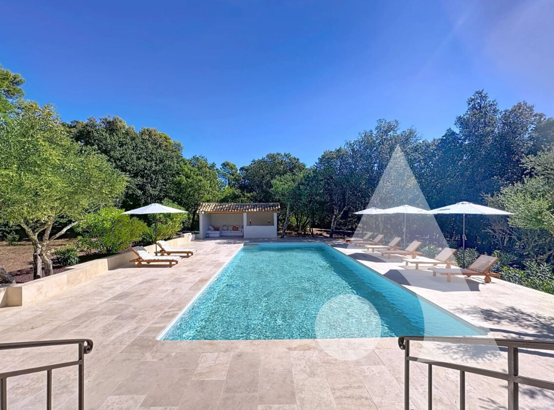 Le Thoronet, Magnifique bastide provençale de 350 m² sur 13.000 m² de terrain, entre authenticité et raffinement. Entièrement rénovée en 2024 avec goût et matériaux nobles. A seulement 2 minutes du village du Thoronet, célèbre pour son abbaye cistercienne, cette bastide provençale entièrement rénovée incarne l'élégance intemporelle du Sud. Nichée dans un écrin de verdure de 13 000 m², sans aucun vis-à-vis et planté d'oliviers, elle offre un cadre de vie paisible, baigné de lumière et rythmé par le chant des cigales. Un intérieur alliant charme et modernité. Au rez-de-chaussée, une entrée élégante ouvre sur un salon avec cheminée, une cuisine semi-ouverte prolongée d'un espace repas donnant sur une vaste terrasse ensoleillée à la vue dégagée. Une suite avec salle d'eau, un bureau, une buanderie et un cellier complètent ce niveau pensé pour le confort quotidien. A l'étage, trois suites avec salles de douche personnalisées se déploient dans une atmosphère feutrée. La chambre de maître séduit par sa terrasse tropézienne dominant les collines, son dressing et sa salle d'eau raffinée équipée d'une double vasque et douche à l'italienne. Un grand solarium vient parfaire cet espace, idéal pour la lecture, le yoga ou de paisibles moments de détente. Le rez-de-jardin abrite un studio indépendant avec cuisine et salle d'eau, parfait pour recevoir en toute autonomie. De vastes espaces annexes modulables offrent un potentiel rare : salle de sport, atelier ou futur studio indépendant, ouvrant sur une terrasse couverte d'environ 80 m², véritable refuge de fraîcheur en été. Un extérieur pensé pour la détente Le parc dévoile une piscine au sel de 14 x 5,6 m, un pool house, un terrain de jeux et un terrain de pétanque. Tout ici invite à savourer la douceur de vivre provençale. Confort et prestations haut de gamme Climatisation réversible, garage triple, grand atelier, portail électrique, nombreuses places de stationnement, fibre optique : chaque détail a été pensé pour conjuguer authenticité et modernité. Un emplacement idéal A seulement 8 km de l'autoroute, cette propriété bénéficie d'une situation stratégique : Nice, Aix-en-Provence et Marseille sont accessibles en 1h à 1h15, tout comme leurs aéroports. A proximité de Lorgues, de son marché provençal, de ses commerces, restaurants et écoles, la bastide s'inscrit au coeur du Var, entre nature et art de vivre. Une propriété d'exception, rare et harmonieuse, où se mêlent charme, élégance et sérénité, pour les amoureux de la Provence authentique. Renseignements auprès de: Romain Rousseaux Sixième Avenue Salernes 06 11 50 30 41 ou par mail à rrousseaux@sixiemeavenue.com ROMAIN ROUSSEAUX (EI) Agent Commercial - Numéro RSAC : 482 801 875 - DRAGUIGNAN.