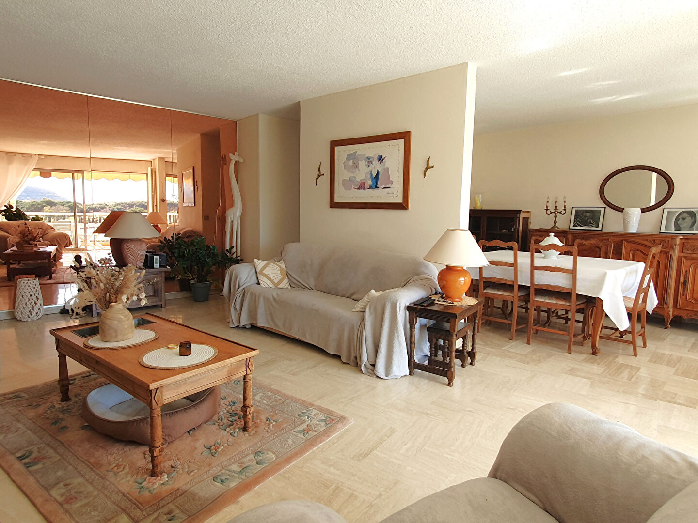 A Mandelieu-la-Napoule, dans une résidence de standing avec piscine et espaces verts, appartement 4 pièces de 109 m² en étage élevé. Traversant et lumineux, il offre une vue dégagée sur la rivière avec petit aperçu mer ainsi que sur les montagne. Il se compose d'un séjour ouvrant sur une terrasse, d'une cuisine indépendante, de deux chambres avec rangements et salles d'eau, et d'une troisième pièce ouverte sur le séjour (salle à manger ou chambre). Balcon, terrasse et buanderie complètent l'ensemble. Parking en sous-sol et cave. Proche port, commodités et axes principaux, dans un environnement calme et recherché. (5.92 % honoraires TTC à la charge de l'acquéreur.) Copropriété de 1200 lots - dont 400 lots habitation. Charges annuelles : 6740 euros.