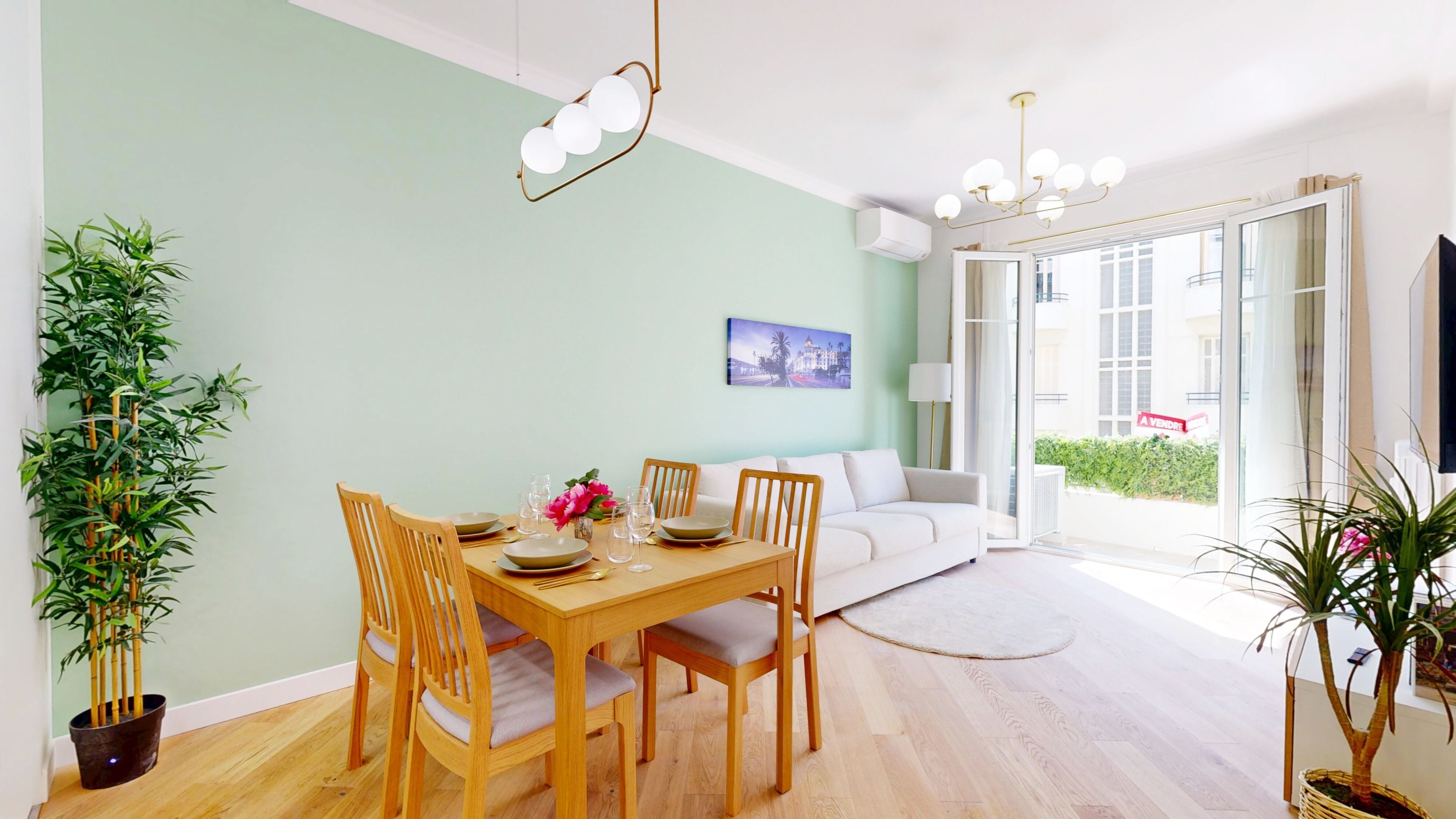L'appartement meublé à neuf se compose d'un séjour avec cuisine américaine entièrement équipée, de 2 chambres avec placards et d'une salle d'eau. Vous disposez d'un large balcon et l'appartement est entièrement climatisé.
