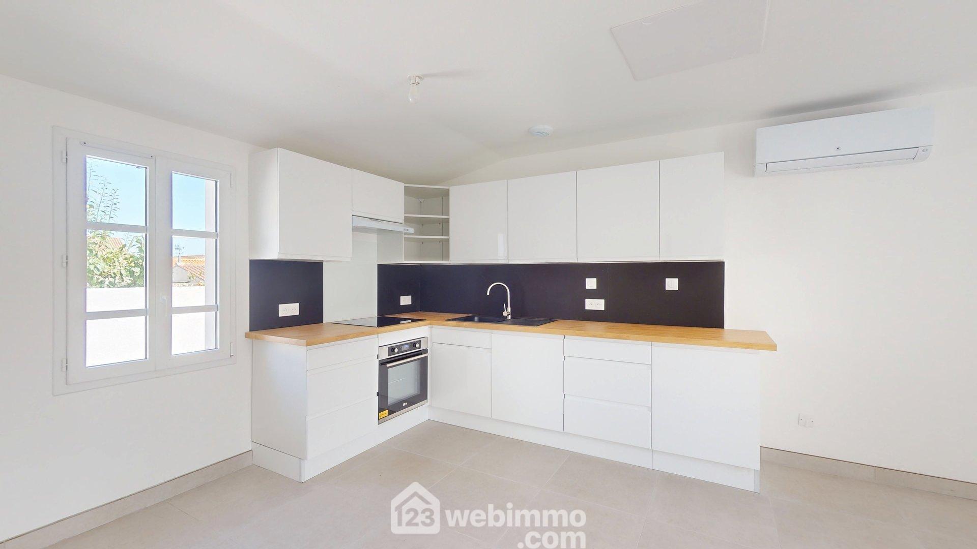 Dès l'entrée, le charme opère : une rénovation soignée, des lignes épurées et une luminosité omniprésente confèrent à cette maison de 65,5 m² une atmosphère à la fois moderne et chaleureuse. La pièce de vie de 37 m², baignée de lumière naturelle, accueille une cuisine ouverte élégamment équipée : plaque à induction, four pyrolyse, hotte filtrante, évier encastré et lave-vaisselle intégré. Un espace parfait pour partager des instants conviviaux, en toute simplicité.