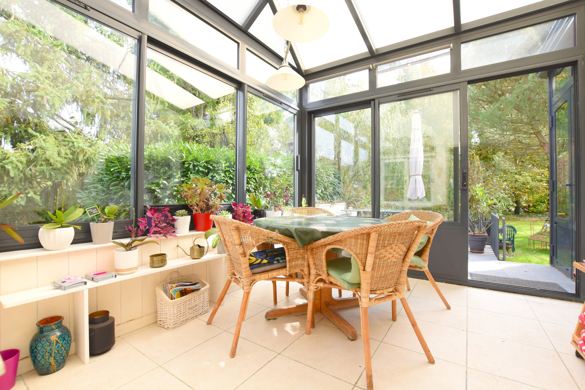 La cuisine dînatoire équipée, s'ouvre directement sur la véranda, idéale pour profiter de la lumière naturelle tout au long de la journée. Toujours au rez-de-chaussée, vous trouverez également un bureau ou chambre d'appoint, ainsi qu'une GRANDE SUITE PARENTALE entièrement vitrée, offrant une vue apaisante sur la nature. Cette suite dispose de sa salle d'eau privative. Un WC indépendant avec lave-mains complète ce niveau.