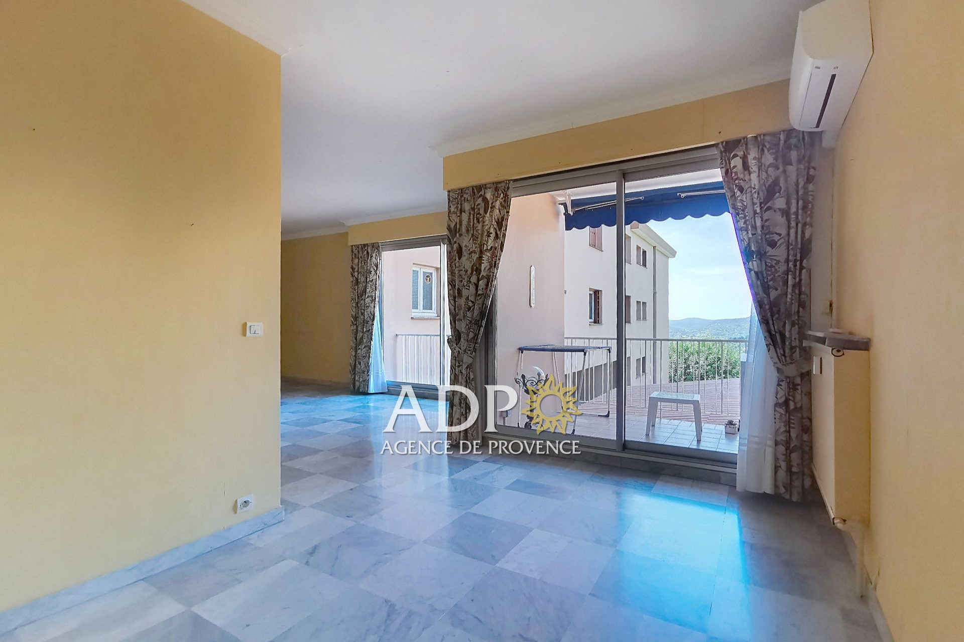 Il se compose d'un vaste séjour avec coin salle à manger ouvrant sur un balcon, d'une cuisine donnant directement sur le jardin, et de deux chambres bien distinctes : l'une côté jardin, l'autre avec son propre balcon. La pièce principale est équipée d'une climatisation pour plus de confort. Quelques travaux de rafraîchissement permettront de le remettre à votre goût.