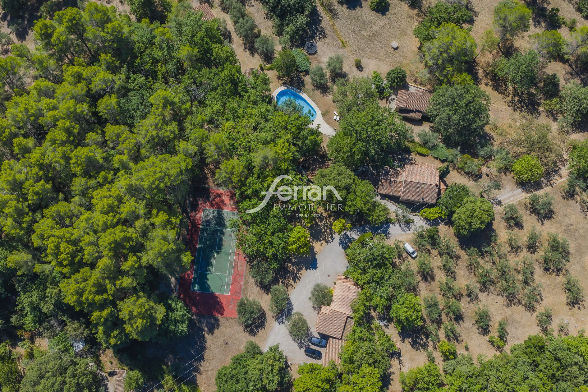 À seulement 3 minutes du charmant village de Callas, vous trouvez ce domaine sur 12 hectares de terrain avec prairies ouvert, forets et du bois avec une vue dégagée. Aucun vis-a-vis, environnement entièrement privatif et sécurisé. Parfaitement adapté pour des chevaux ou tout projet en lien avec la nature. 2 maisons en pierre, pleines de cachet et chacune avec sa cuisine, séjour, 7 chambres et 5 salles de bains au total, une maisonnette de gardien. Autour de 400 m². Beaucoup d'oliviers, Grande piscine chauffée, pool-house, cuisine d'été, 2 ateliers, 2 garages, terrain de tennis.