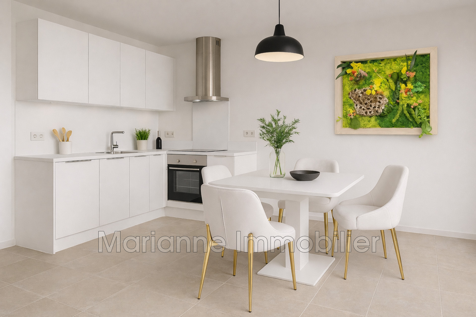 Séjour-cuisine spacieux et lumineux de 33 m² donnant sur le jardin privatif paysagé de 55,65 m²