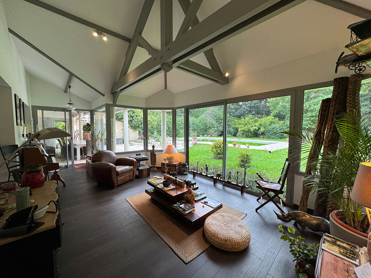 Environnement exceptionnel et calme absolu pour cette très belle maison récente de 1982 de très bonne construction , édifiée sur un magnifique terrain plat et arboré de 3960m2 avec sa piscine chauffée sans aucun vis à vis. Spacieuse réception cathédrale avec cheminée, ouverte sur cuisine avec ilôt central de 100m2 , donnant sur terrasse et jardin Sud-Ouest-Spacieuse suite parentale de 50m2 donnant sur jardin . A l 'étage: Belle mezzanine : salon d'étage + bureau ( 60m2) -2 chambres avec ses salles de bains . Garage - Buanderie/ laverie Son intérieur et son environnement rendent cette propriété tout à fait UNIQUE ! A voir ! REF: 2769 (4.16 % honoraires TTC à la charge de l'acquéreur.)